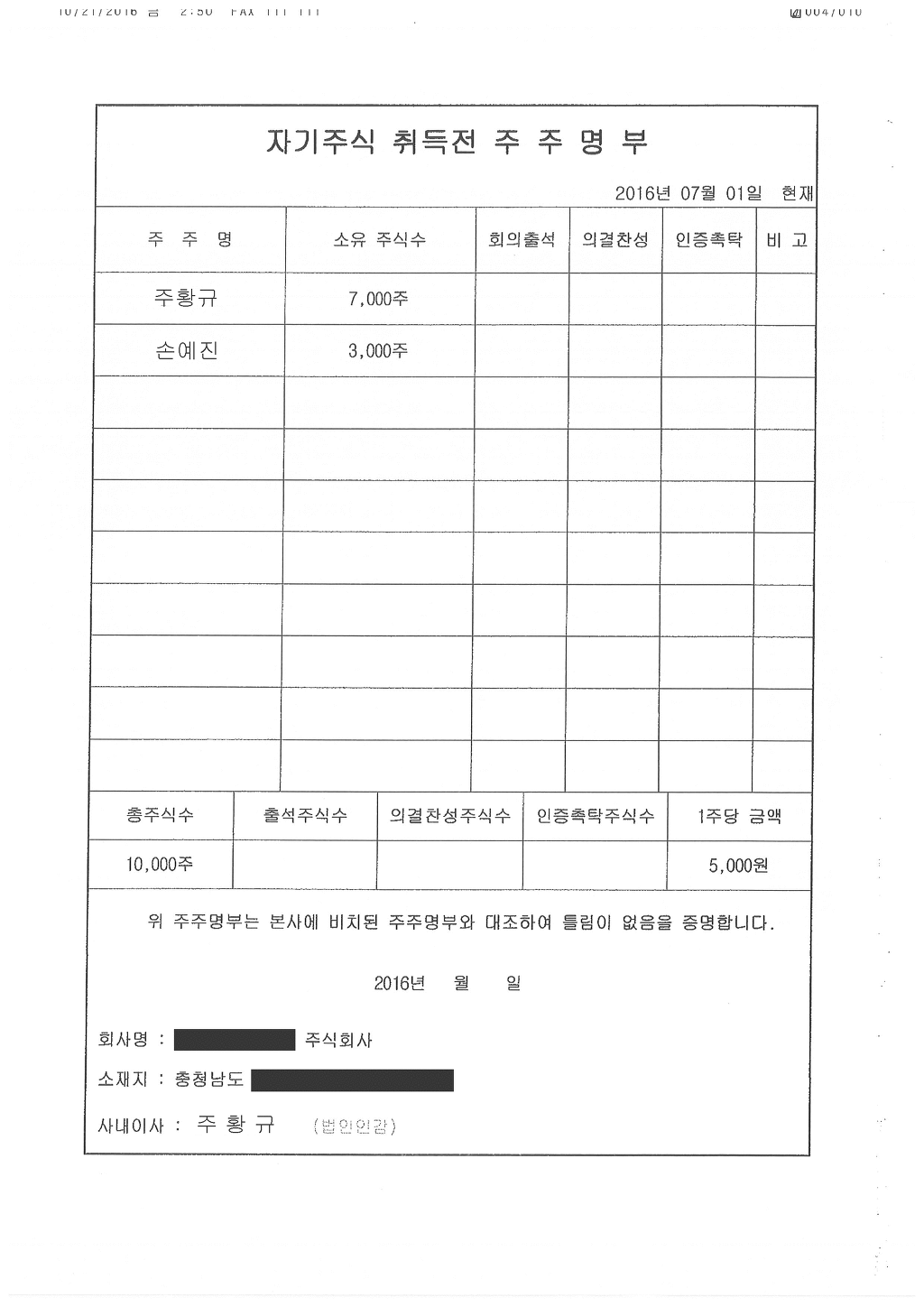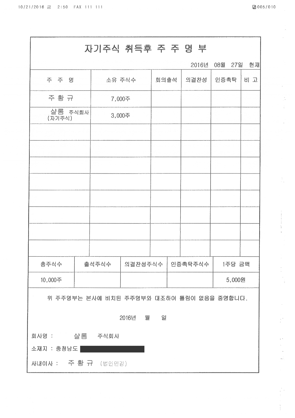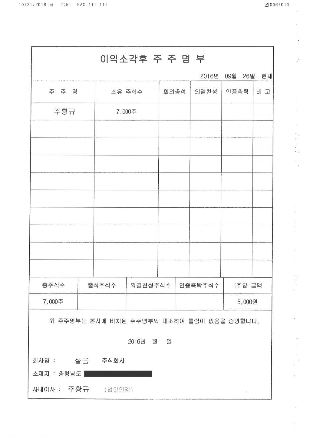 10자기주식소각등기(상법 제343조 제1항 단서)