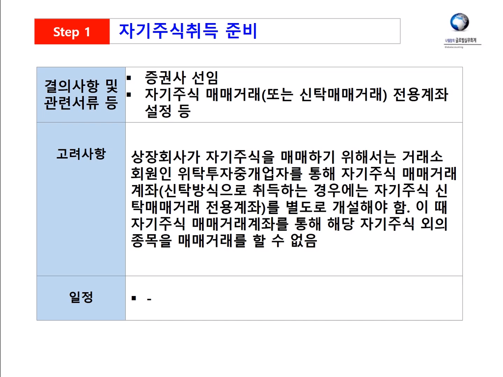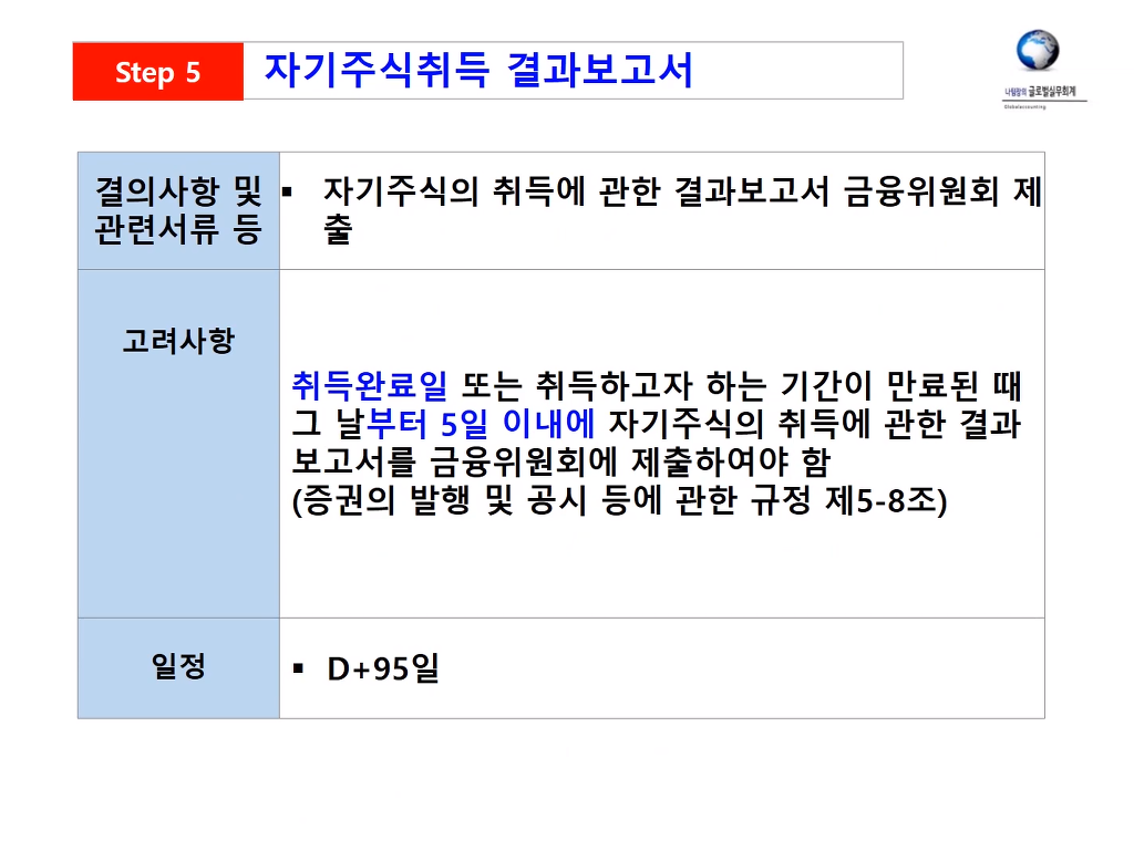 - 이익소각을 위한 자기주식의 취득기간과 일반목적의 자기주식 취득ㆍ처분기간 등 특정기간과 중첩되는 것을 제한