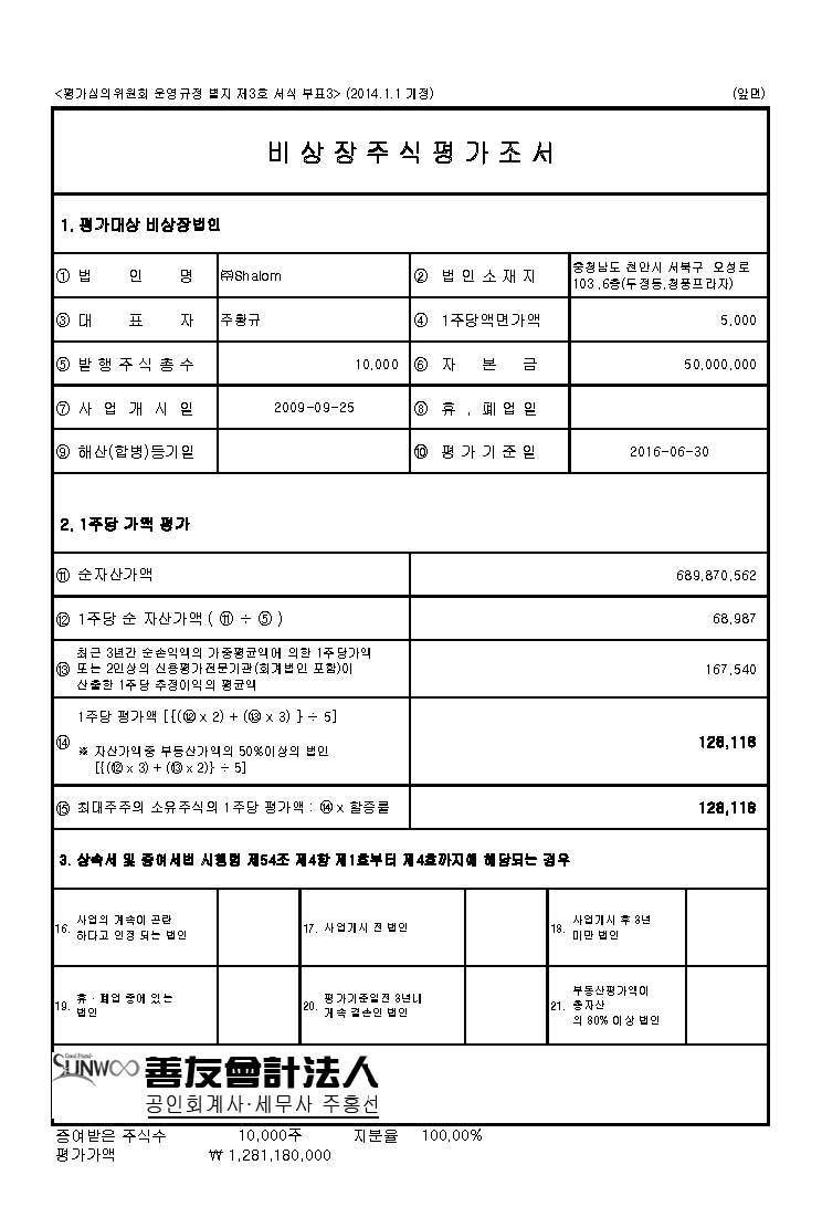 1비상장주식평가(상증법시행령 제54조, 가평가)