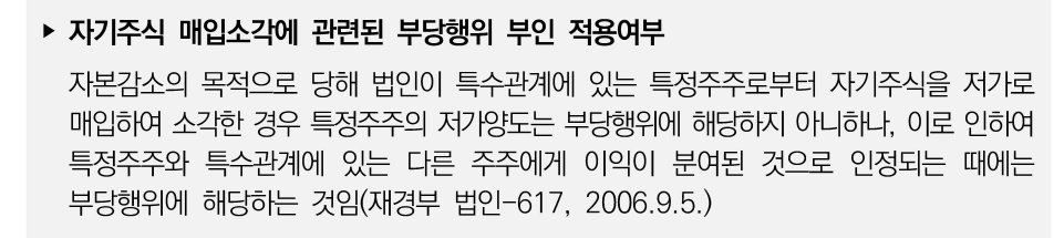 - 감자목적으로 특수관계에 있는 개인으로부터 자기주식을 저가로 매입하는 경우 시가와 매입가와의 차액