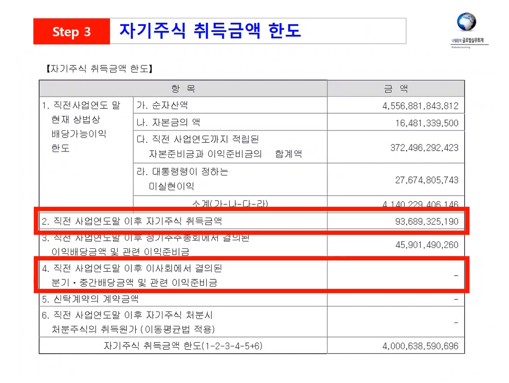 | → | “0” 이상일 경우 이익소각 한도이내에서 소각이 이루어진 것임. |