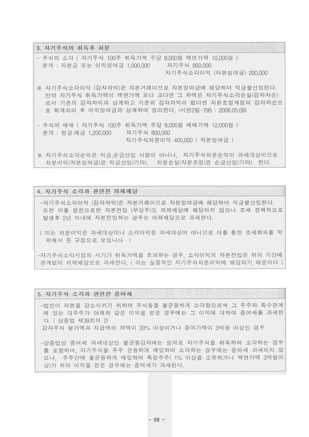 답변 내용 : 자기주식 소각시 법인세의 영향과 주주들에대한 과세여부