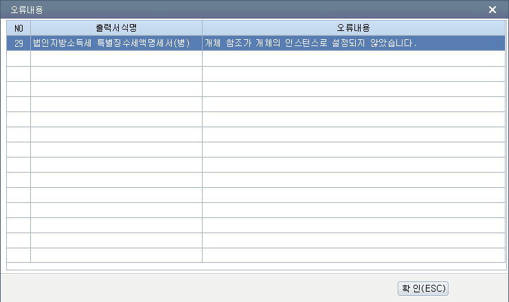 [법인세과세표준 및 세액신고서]의 (19)결산 확정일이 누락된 경우로 yyyy-mm-dd 형식으로 입력 되어야 합니다. 또한 [이익잉여금처분계산서]의 상단 "처분일"에 입력된 날짜가 [법인세과세표준 및 세액신고서]메뉴를 새로 불러오기시 (19)결산확정일에 반영됩니다.