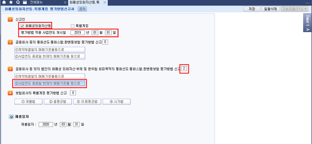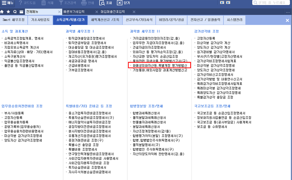 2011년 귀속 부터 외화평가를 한번 선택하면 선택방법으로 계속 인정.