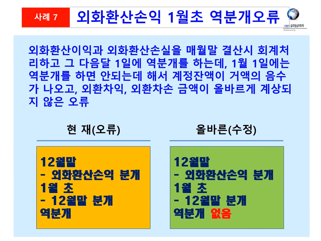 하단은 기말 12.31.의 기준환율(재정환율) 외화 평가금액과 외화의 장부가액과의 차액