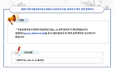 | 답변 | [지출증빙서류검토서(전자신고용)] 에서 표준재무제표계정과목 코드, 과목명이 누락된 데이터가 있는 경우입니다. [계정과목및적요등록]에서 표준제무재표코드,항목이 누락된 계정과목에 대해 '표준재무제표항목'을 선택해주신 뒤 [지출증명서류수취검토서(전자신고용)]메뉴를 새로불러오기 하여 주시기 바랍니다. |  |