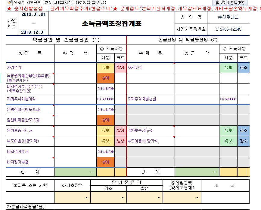 | 익금산입 및 손금불산입 | 손금산입 및 익금불산입 |