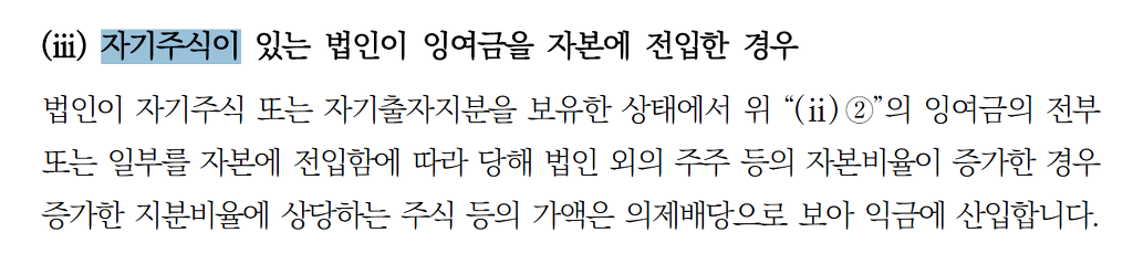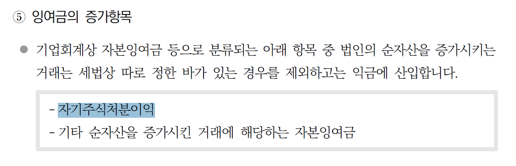 * 관련 집행기준 : 63-55-1 [ 자기주식의 순자산 포함여부 ]