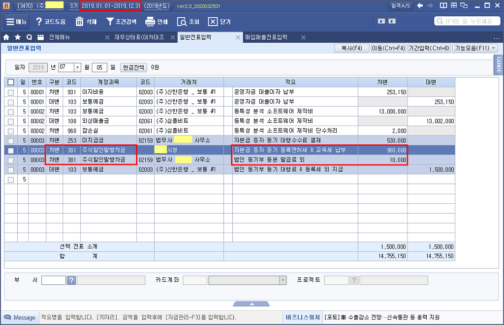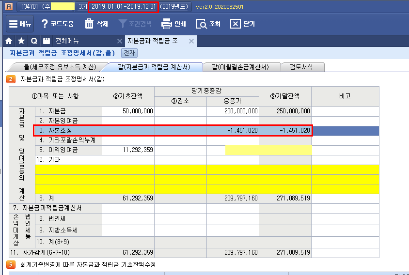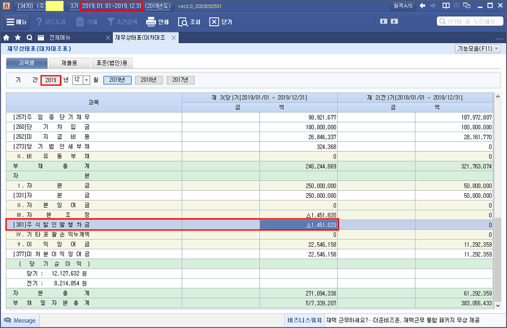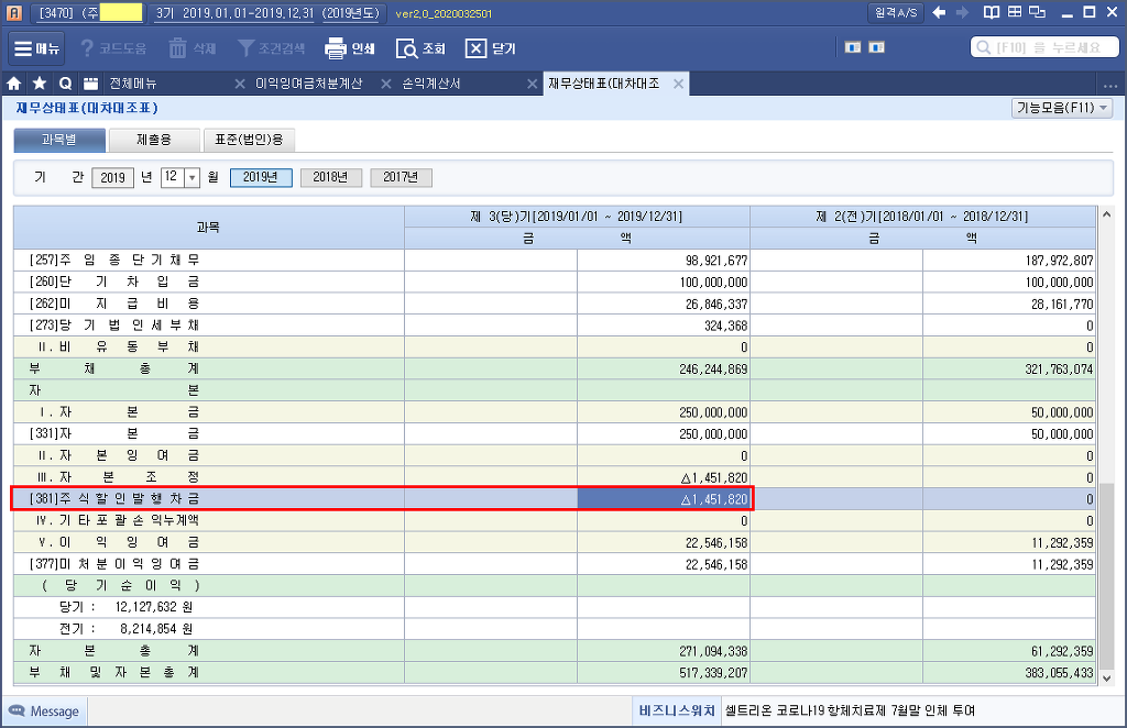 2020년 3월 31일 차) 주식할인발행차금 970,000 / 대) 주식할인발행차금 970,000 분개를 해줘야 재무상태표(대차대조표)상 대차차액이 안뜹니다.
