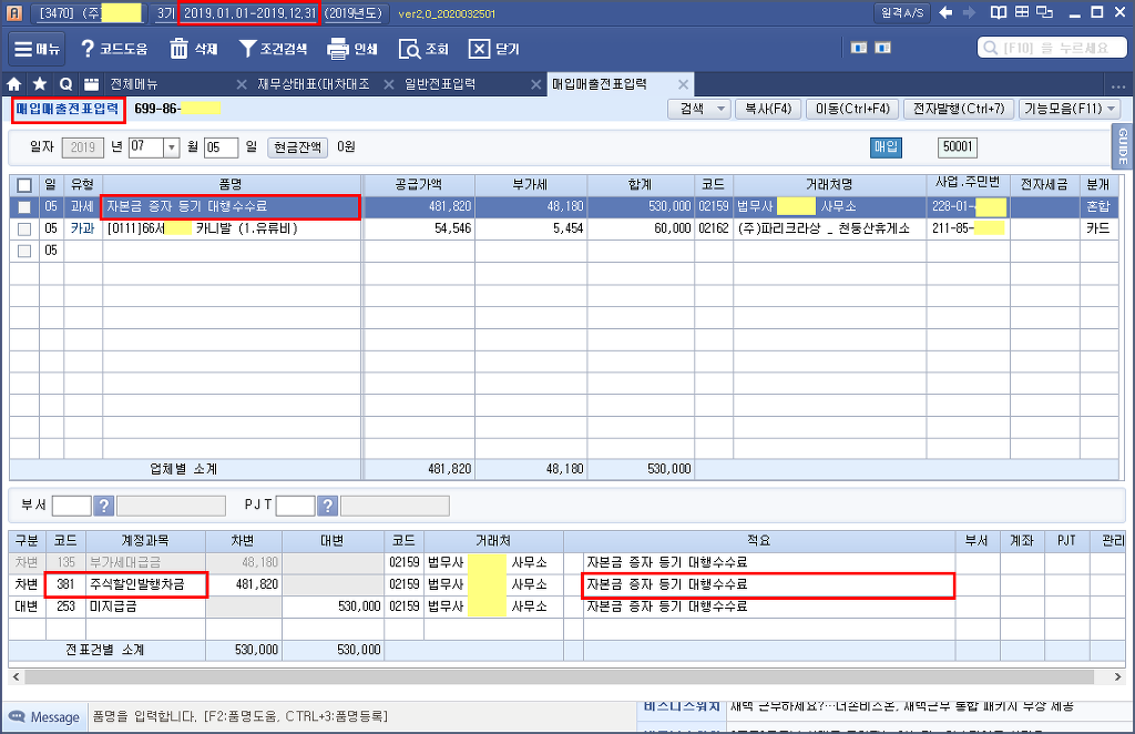 [381] 주식할인발행차금 상기 분개는 반드시 [381] 주식할인발행차금으로 분개해야 합니다. 전기에 잔액 [381] 주식할인발행차금을 차감해야 하기때문에