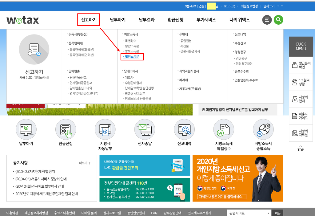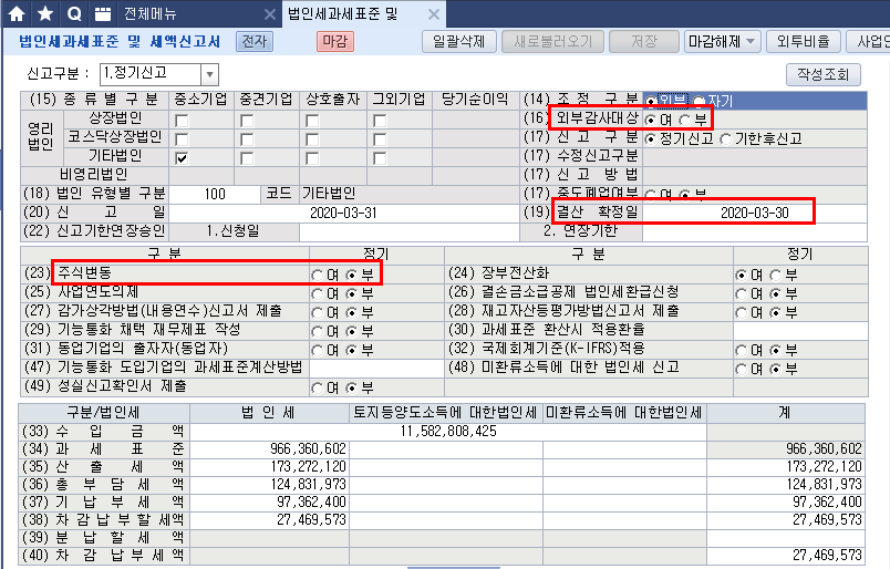그 뒤 부터 법인세 과세표준 및 세액신고서 ~