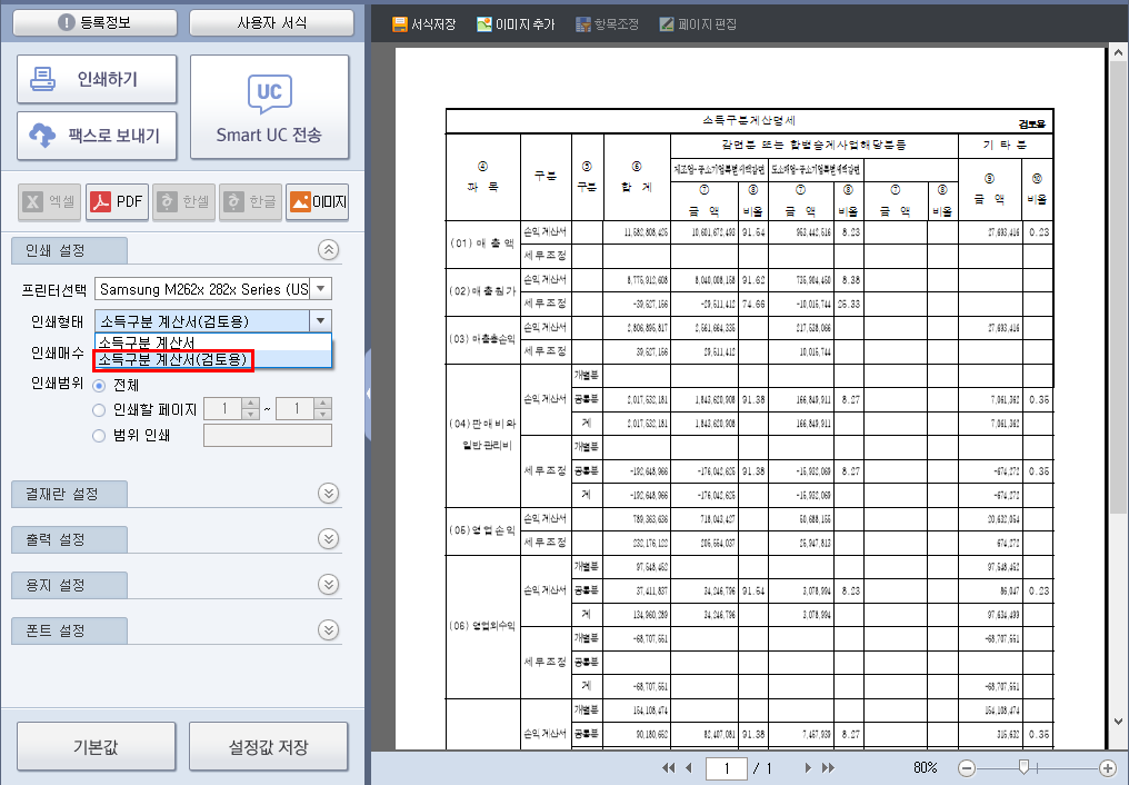공제감면세액 합계표(을) 인쇄시 미리보기 1페이지 2페이지에 금액 있는지 check!!