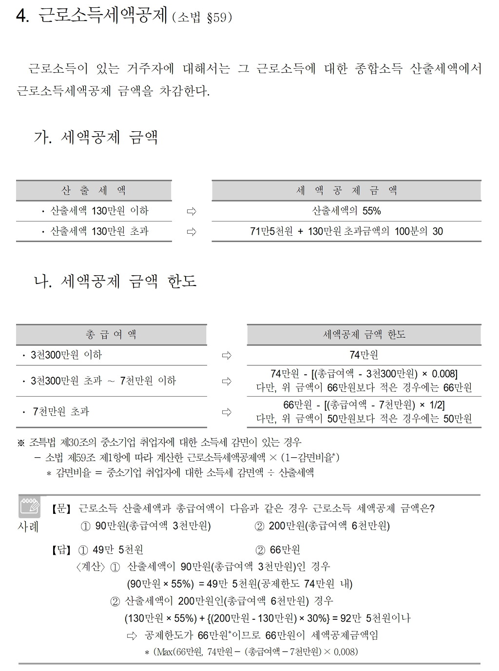 66만원 - [(총급여액 - 7천만원) x 1/2]