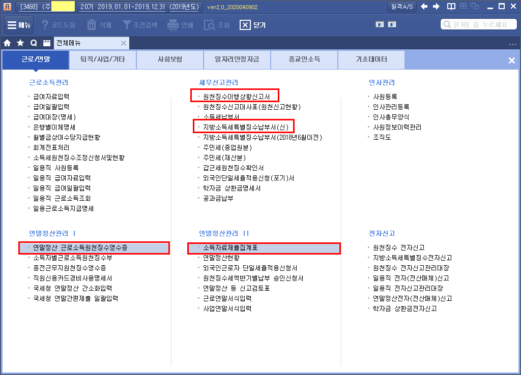 (2019.12.31.현 근무자의 인정상여의 경우 2020년 02월~2020년 02월로 조회)