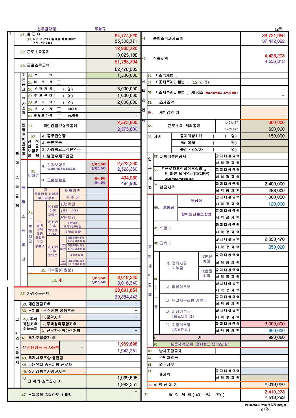조세실 2019년_근로소득원천징수영수증,소득공제신청서-(2020-04-10) 주황규작성.xlsx