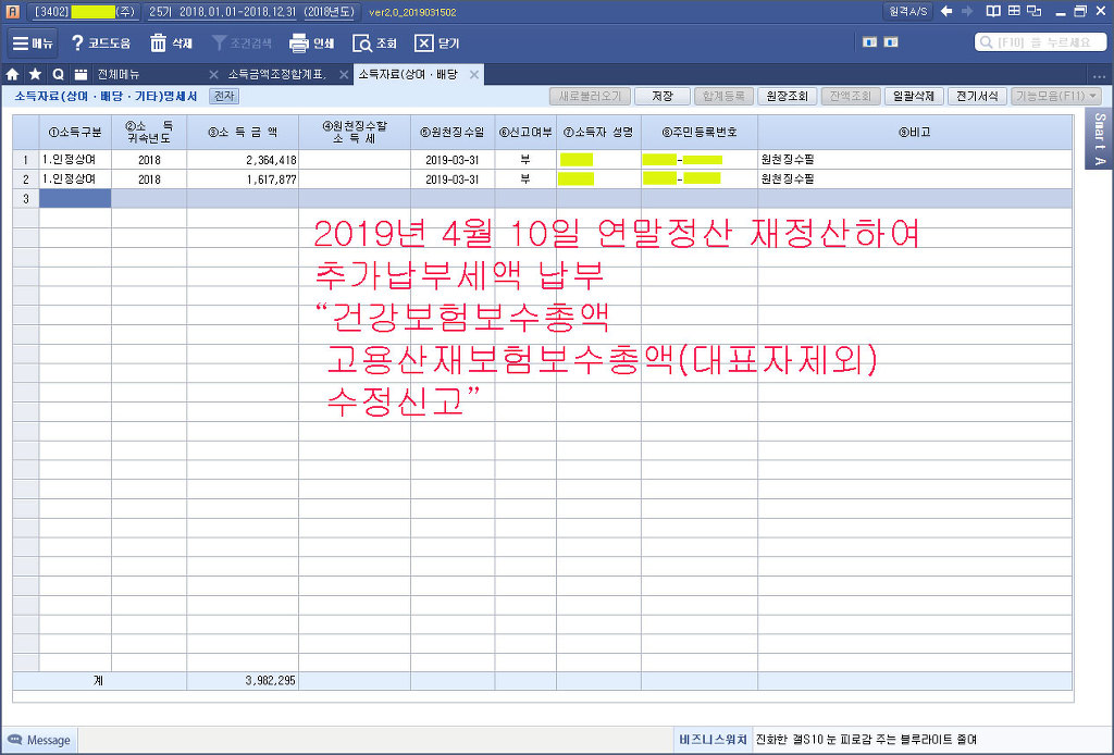 4대보험 수정신고(대표자등은 고용산재 제외,이미 국민연금 소득(급여)상한 초과 제외?해도 될듯.) , 근로소득간이지급명세서 수정신고
