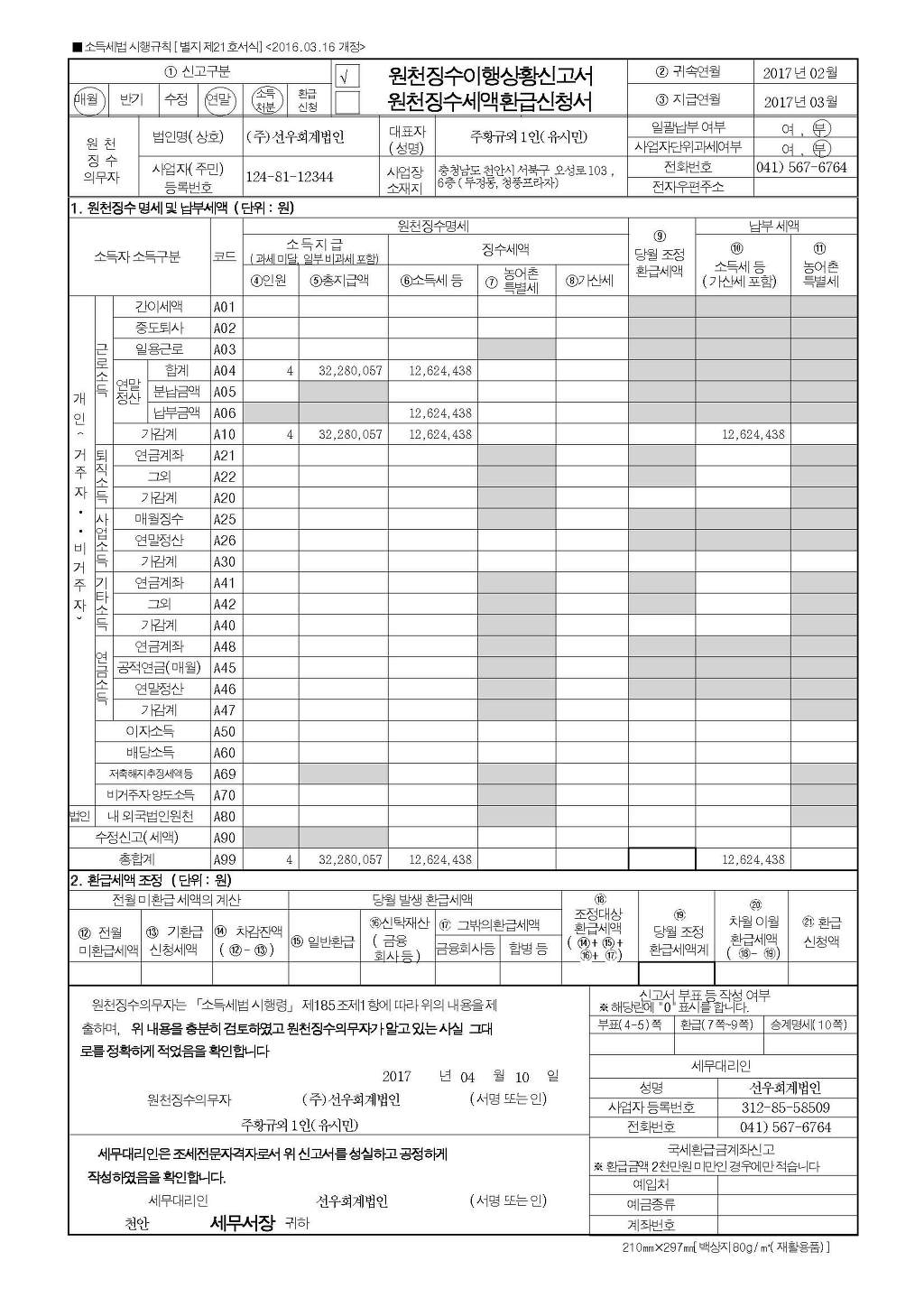조세실 2017년_근로소득원천징수영수증,소득공제신청서-(2018-04-09).xlsx