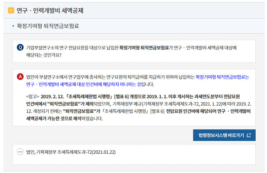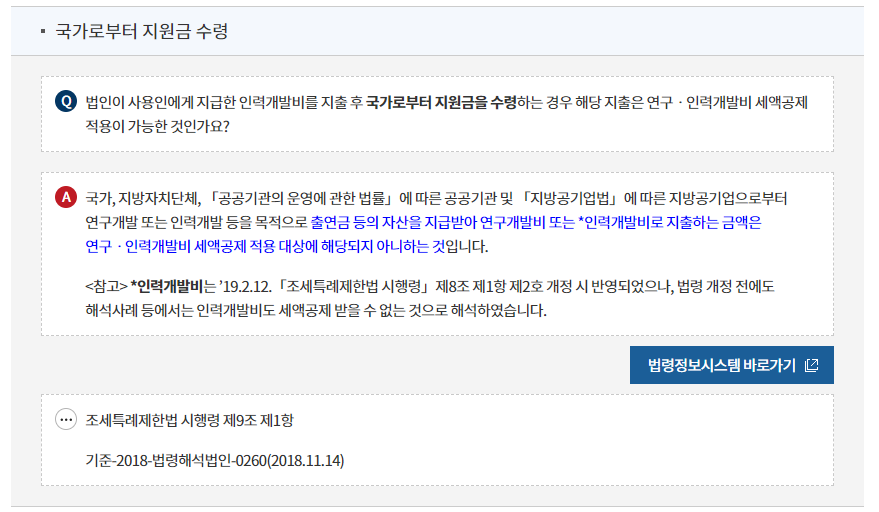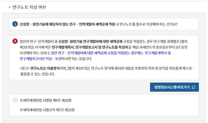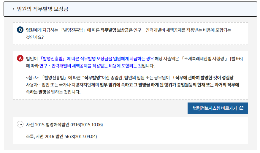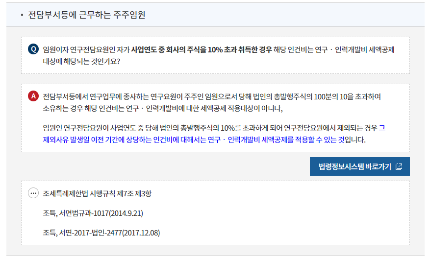 | [ 관련법령 ] | 조세특례제한법 제10조【연구・인력개발비에 대한 세액공제】 |