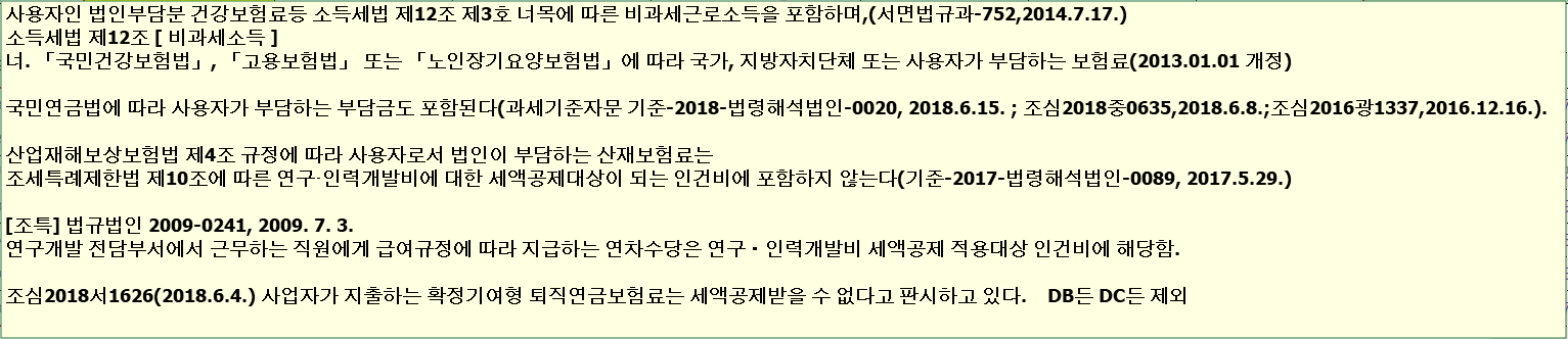 o 급여에 포함되지 않는 사용자 부담분 건강보험료, 국민연금보험료, 산재보험료, 고용보험료 등이 연구인력개발비 세액공제 대상인 인건비에 포함되는지 여부
