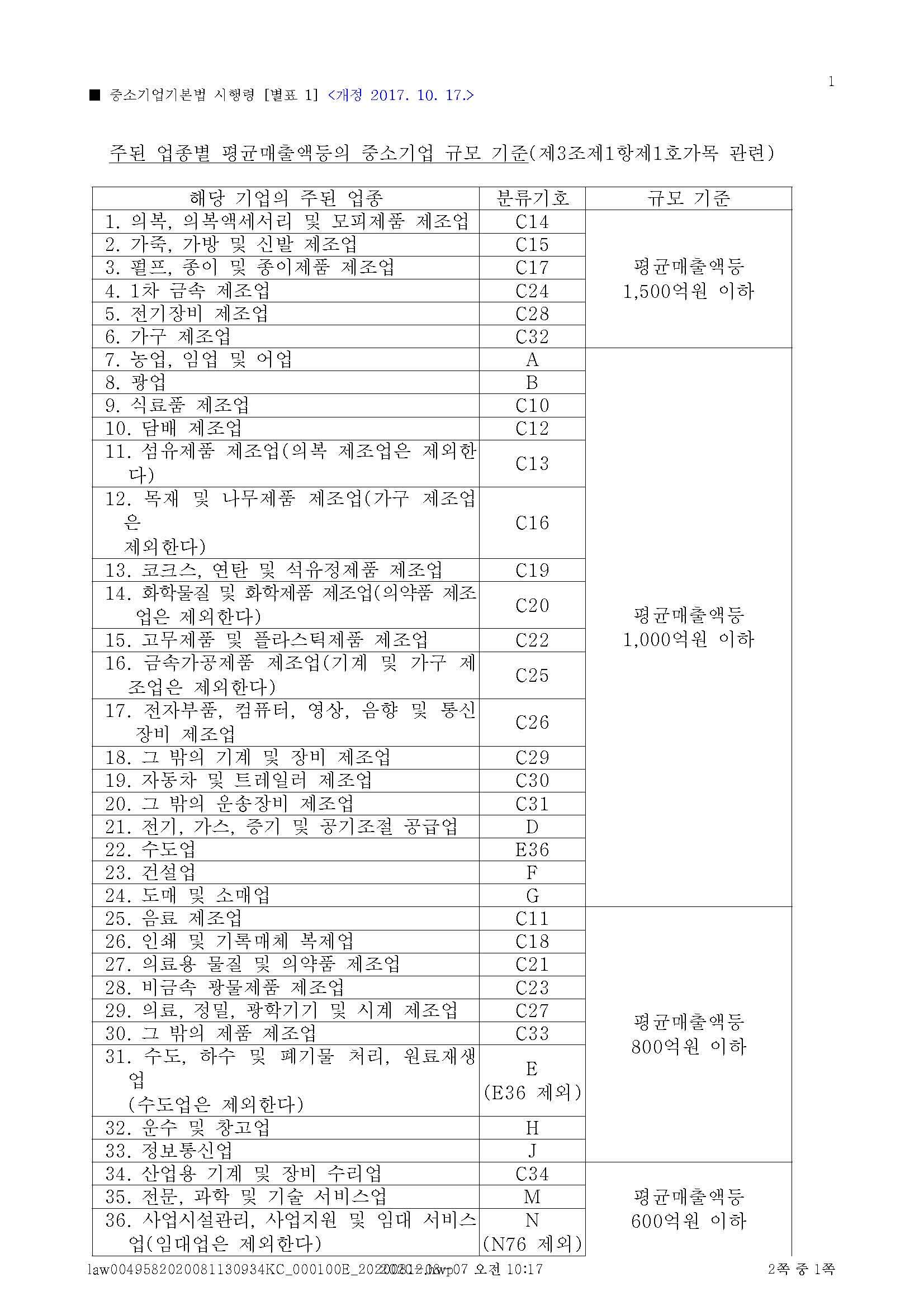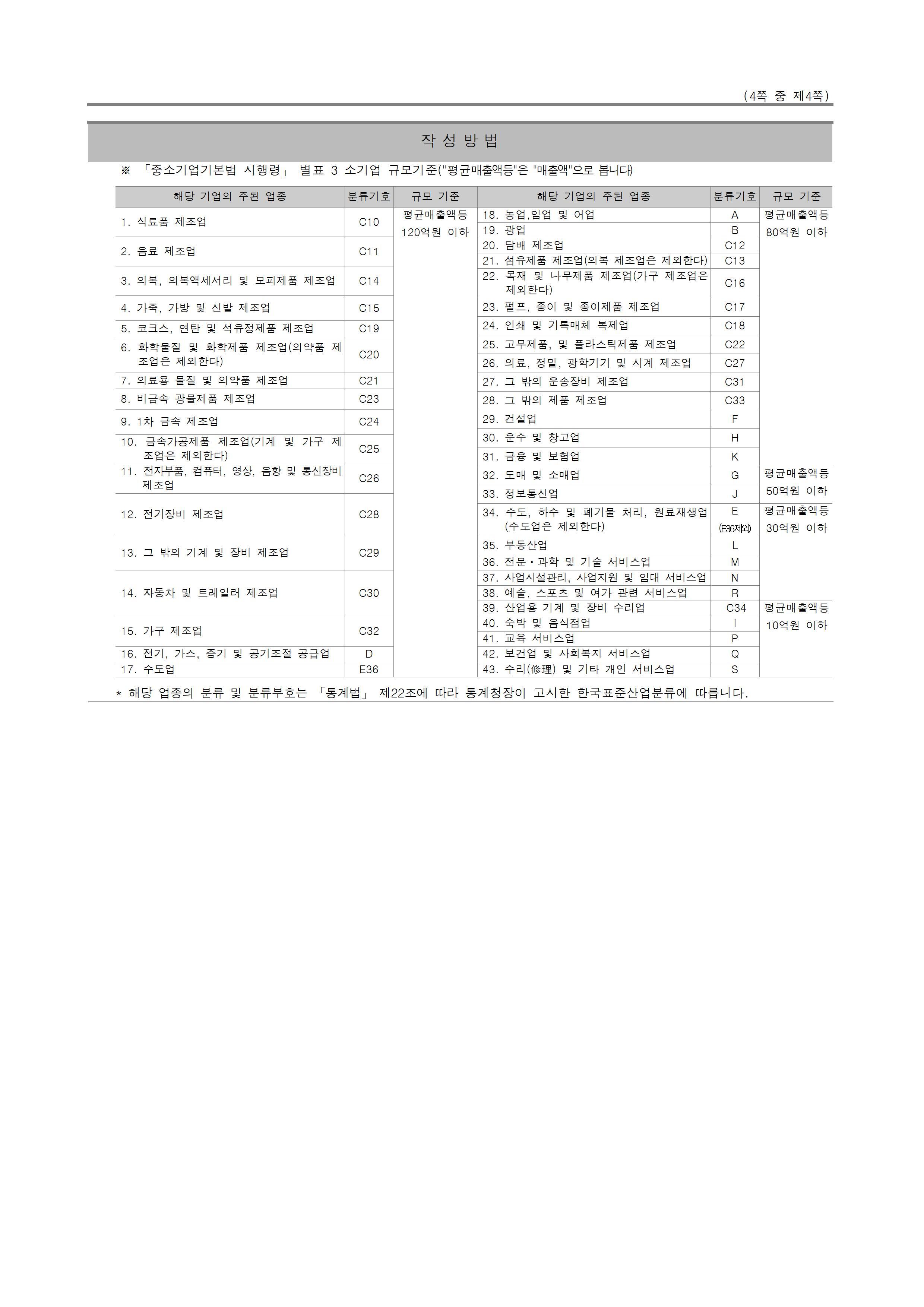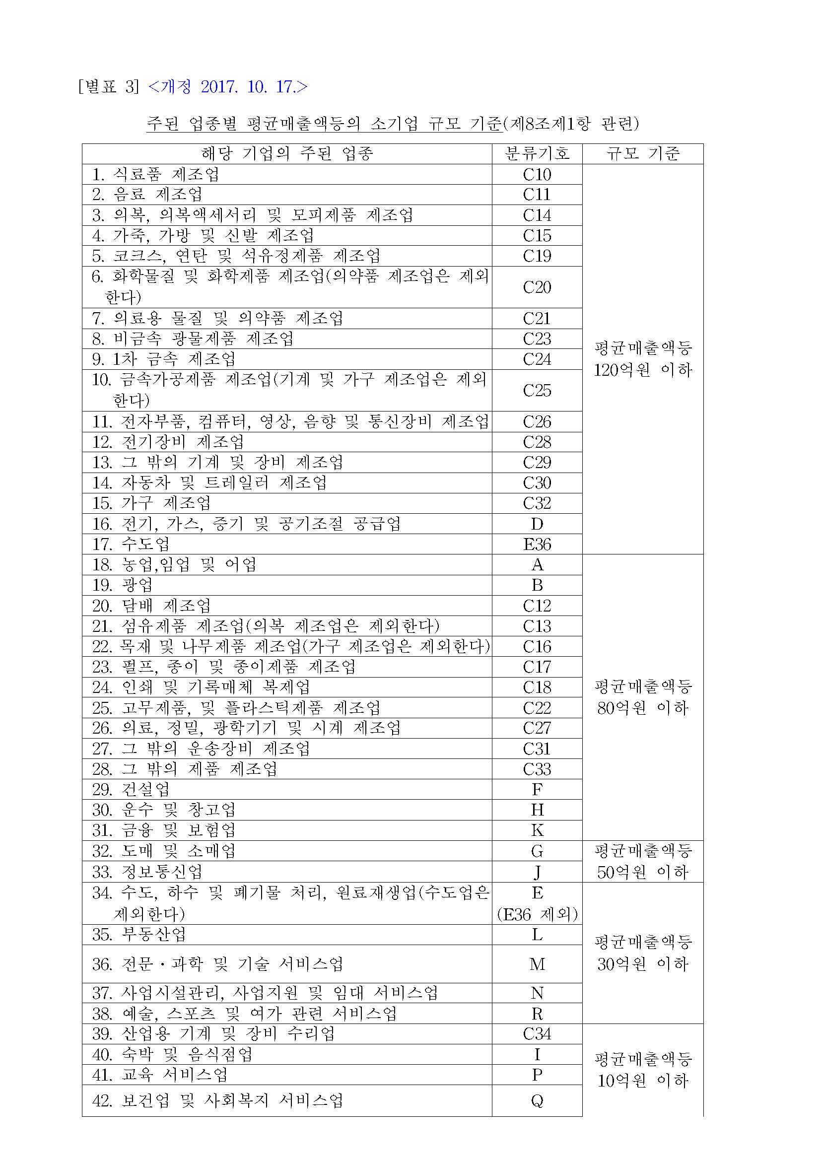 - 「중소기업기본법 시행령」 별표 3의 규모기준 (15) 억원 이하