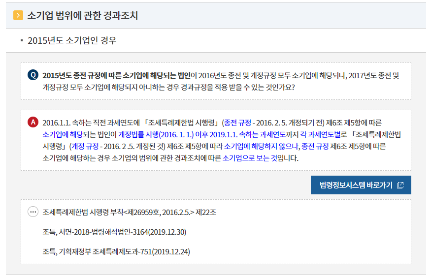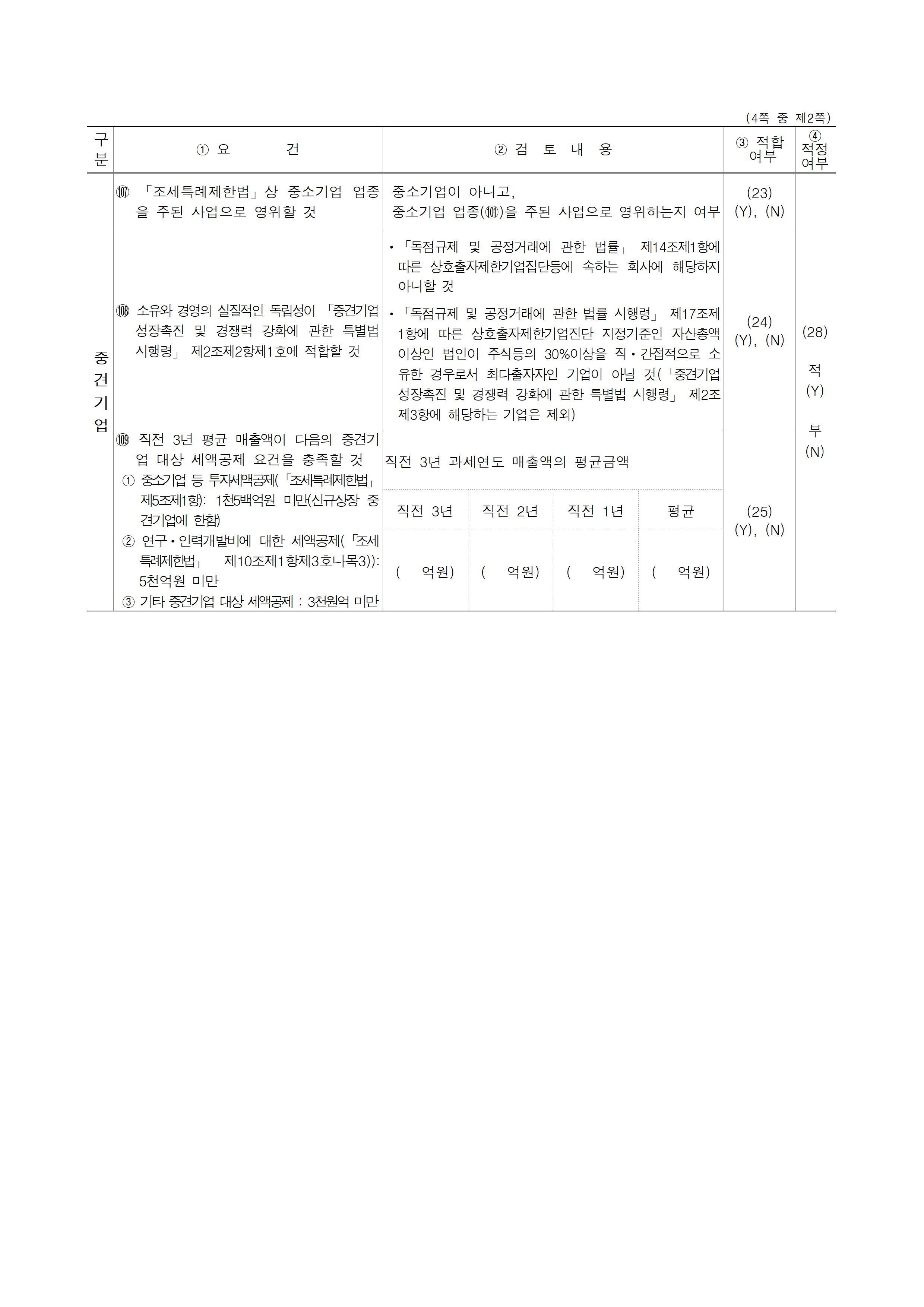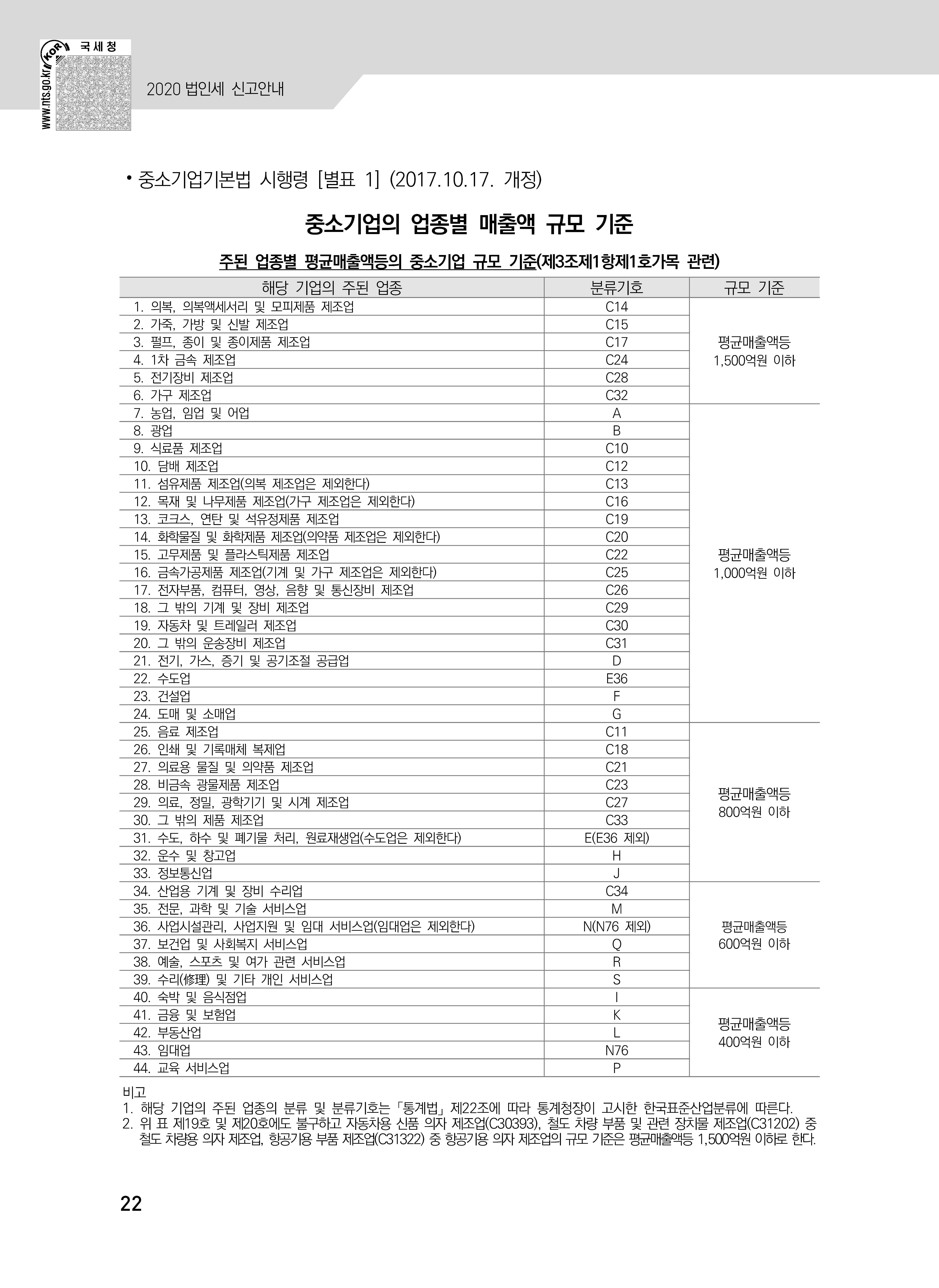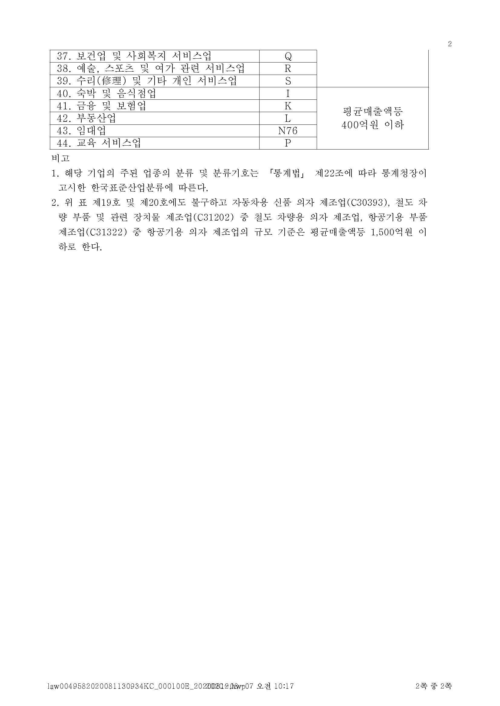 - 「중소기업기본법 시행령」 별표 3의 규모기준 (15) 억원 이하
