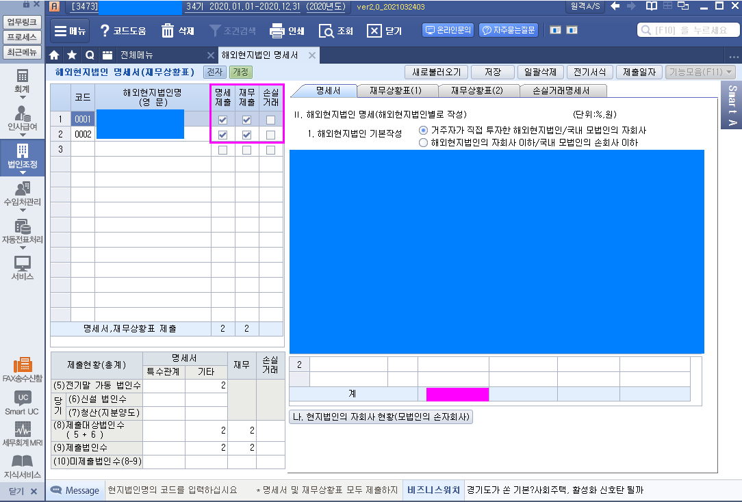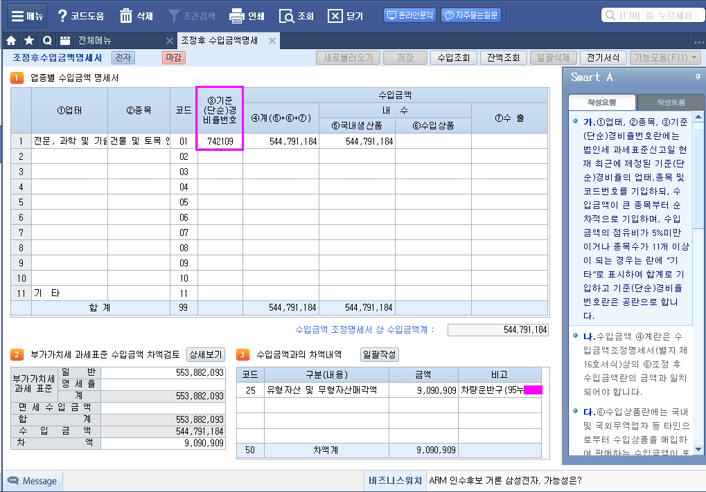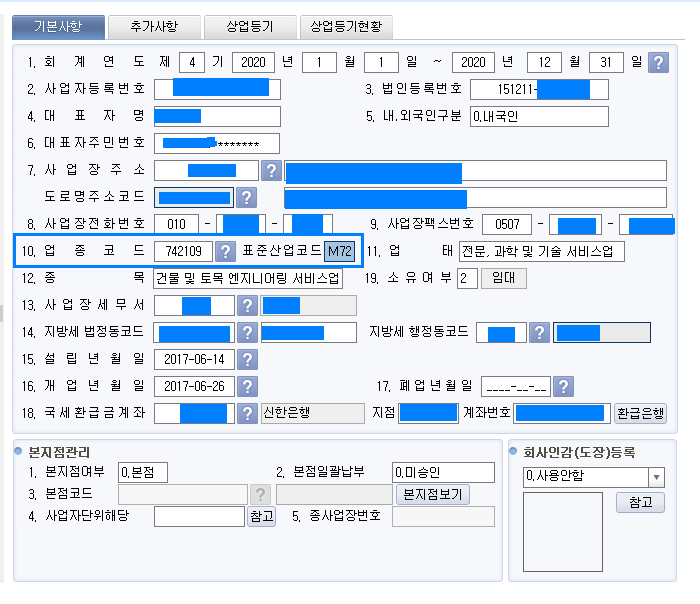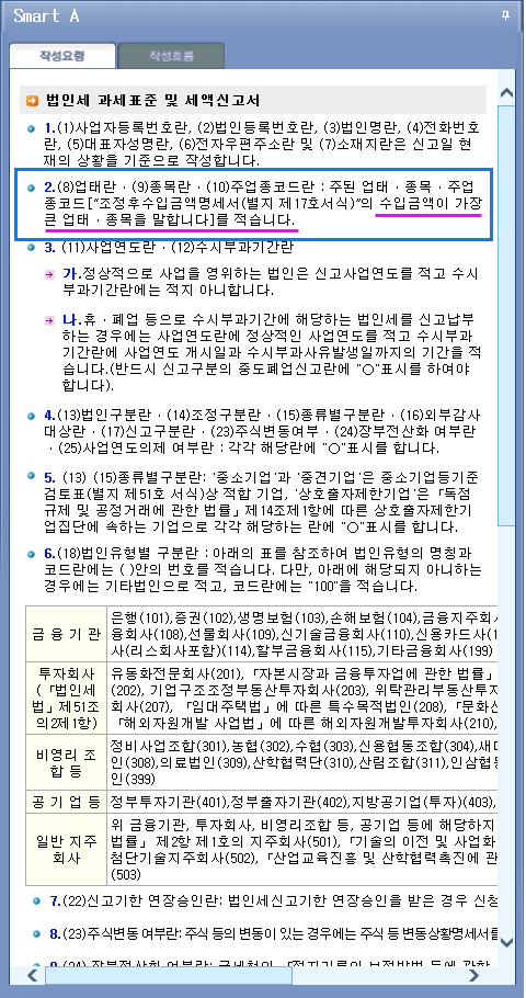 법인세 과세표준 및 세액신고서 - 회사등록의 업종코드를 중소기업별표의 자산금액 자동으로 불러옴. 아 소기업은 불러와지는데 중기업이 안불러와지넹.