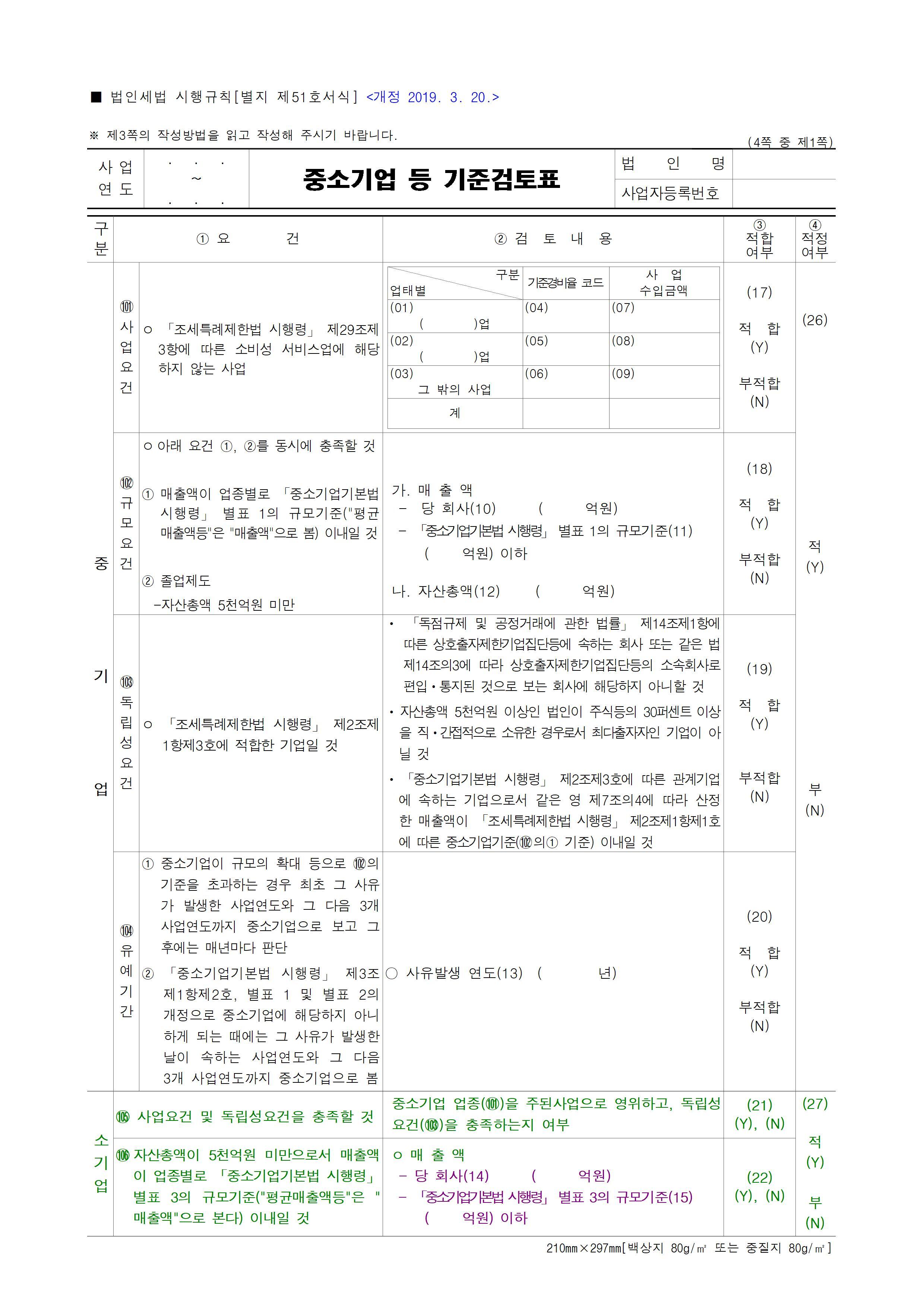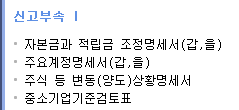 중소기업검토표,기부금,자본금과적립금(갑),최저한세조정계산서,소득구분계산서,기부금조정명세서,주요계정명세서(갑,을)