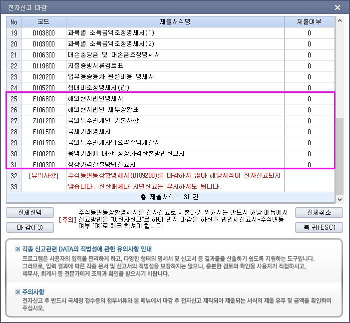 지출증명서류수취검토서(전자신고용) , 마감 캡쳐