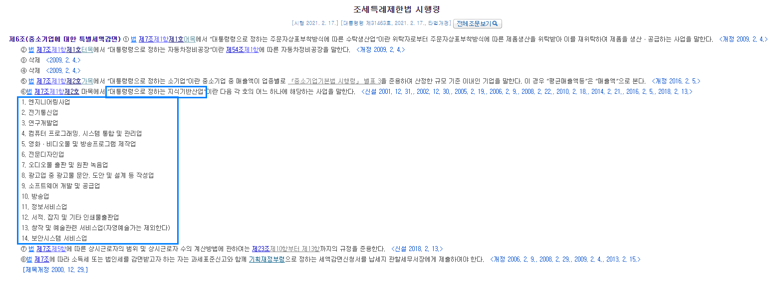 중기업 102. 규모요건 가. 매출액 - 「중소기업기본법시행령」 별표1의 규모기준(11)