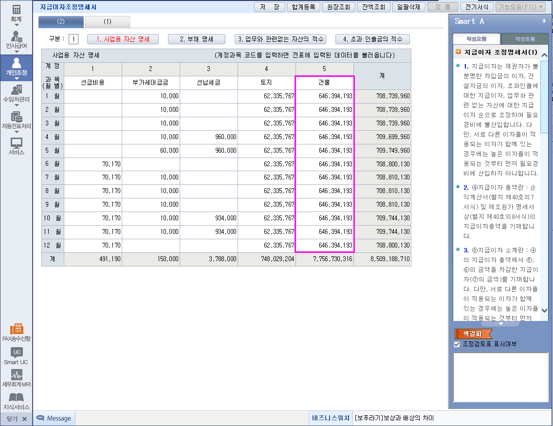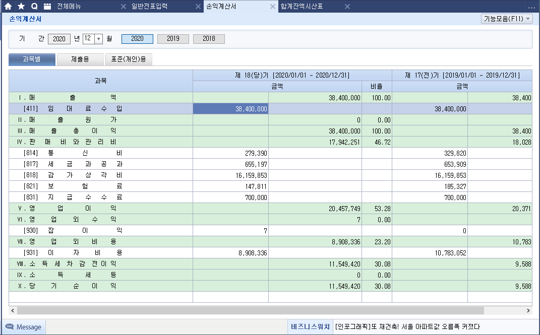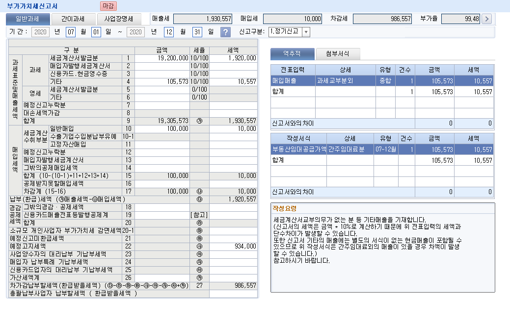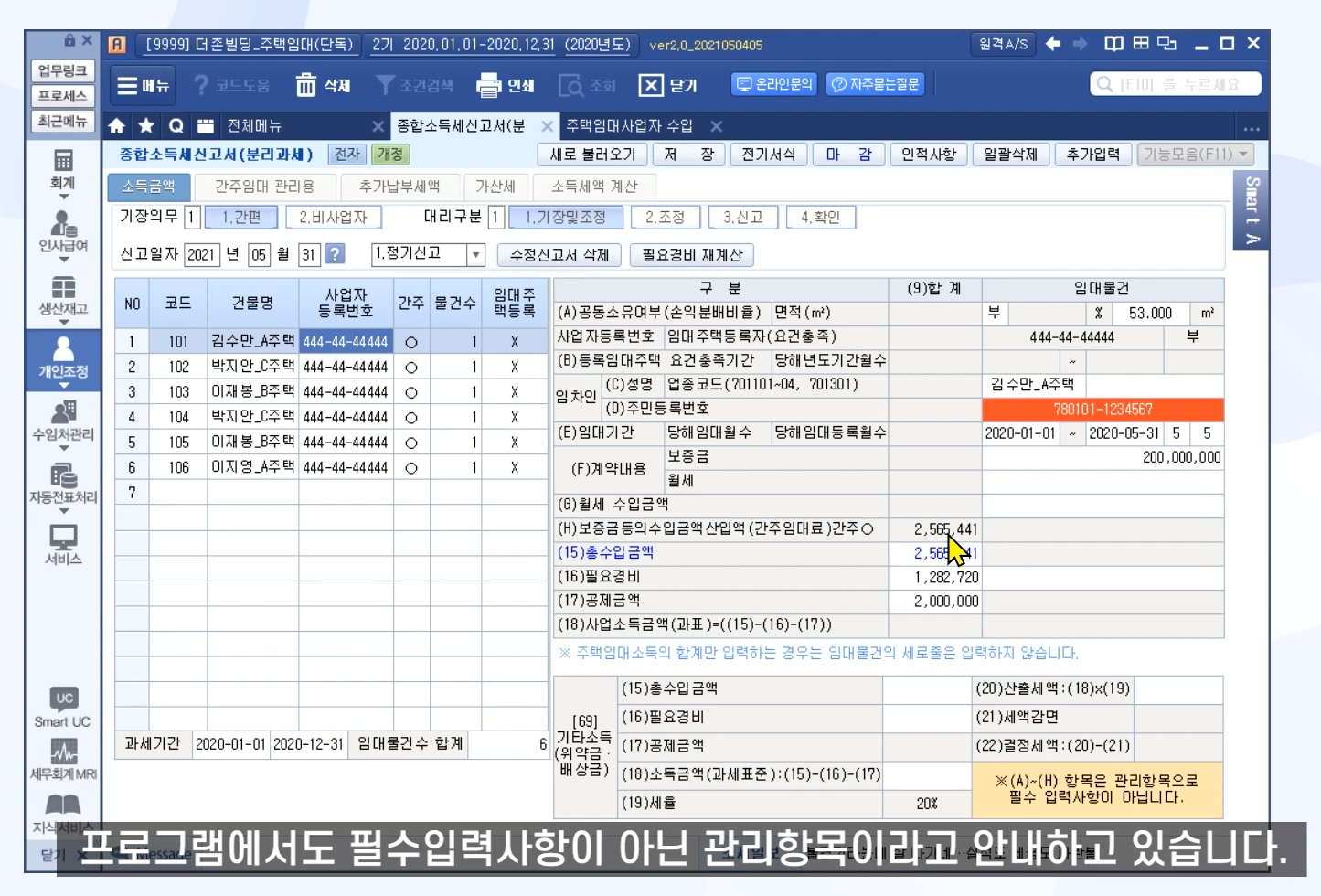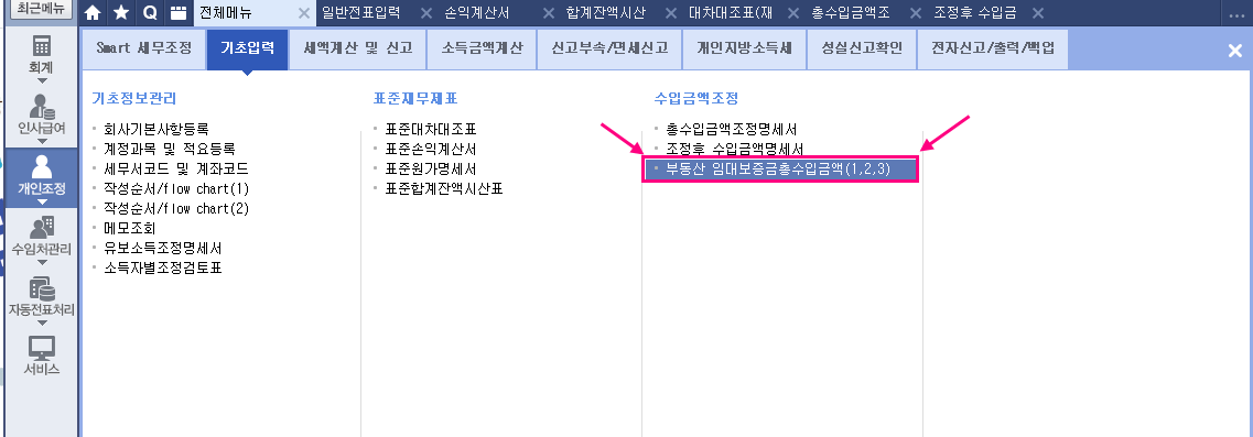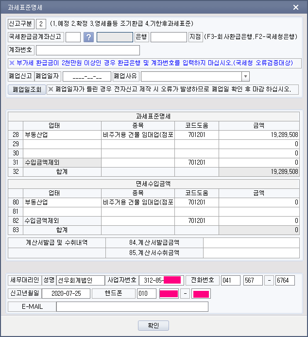 - 간주임대료는 부가세 신고시 과세표준에 포함되고, 종합소득세 결산시 수입금액에도 포함됩니다. 그러므로 과세표준 명세서 수입금액에서 제외시키면 안됩니다.
