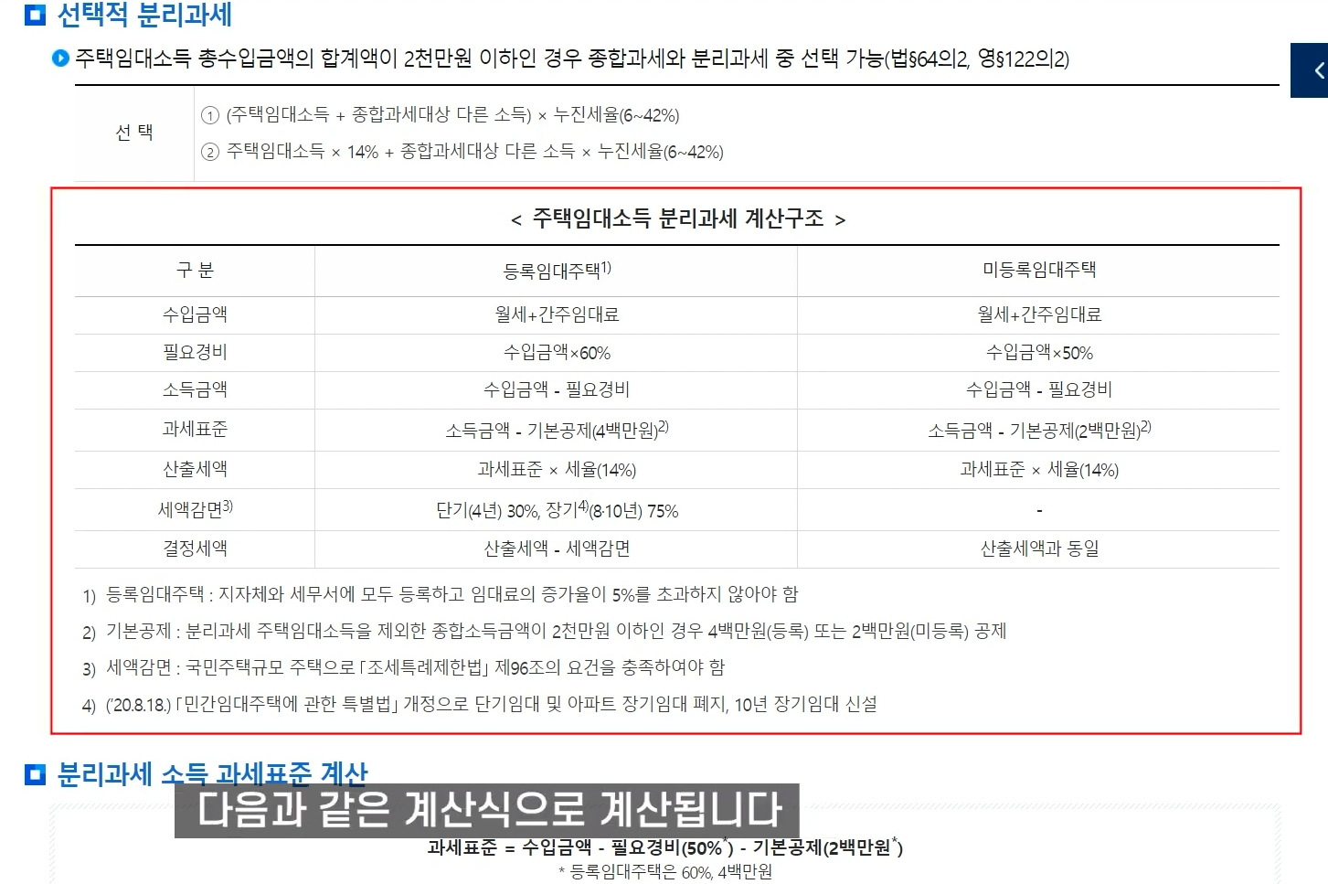 총수입금액에 산입할 금액 = {해당 과세기간의 보증금등 - 3억원(보증금등을 받은 주택이 2주택 이상인 경우에는 보증금등의 적수가 가장 큰 주택의 보증금등부터 순서대로 뺀다)}의 적수 × 60/100 × 1/365(윤년의 경우에는 366) × 정기예금이자율