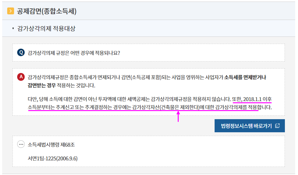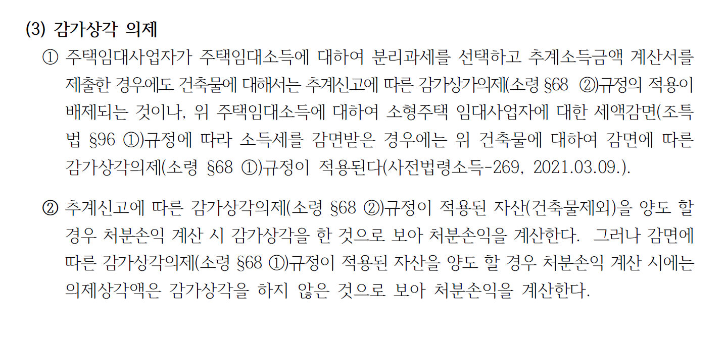 조규정에 따라 소득세를 감면받은 경우에는 감가상각 의제 적용)