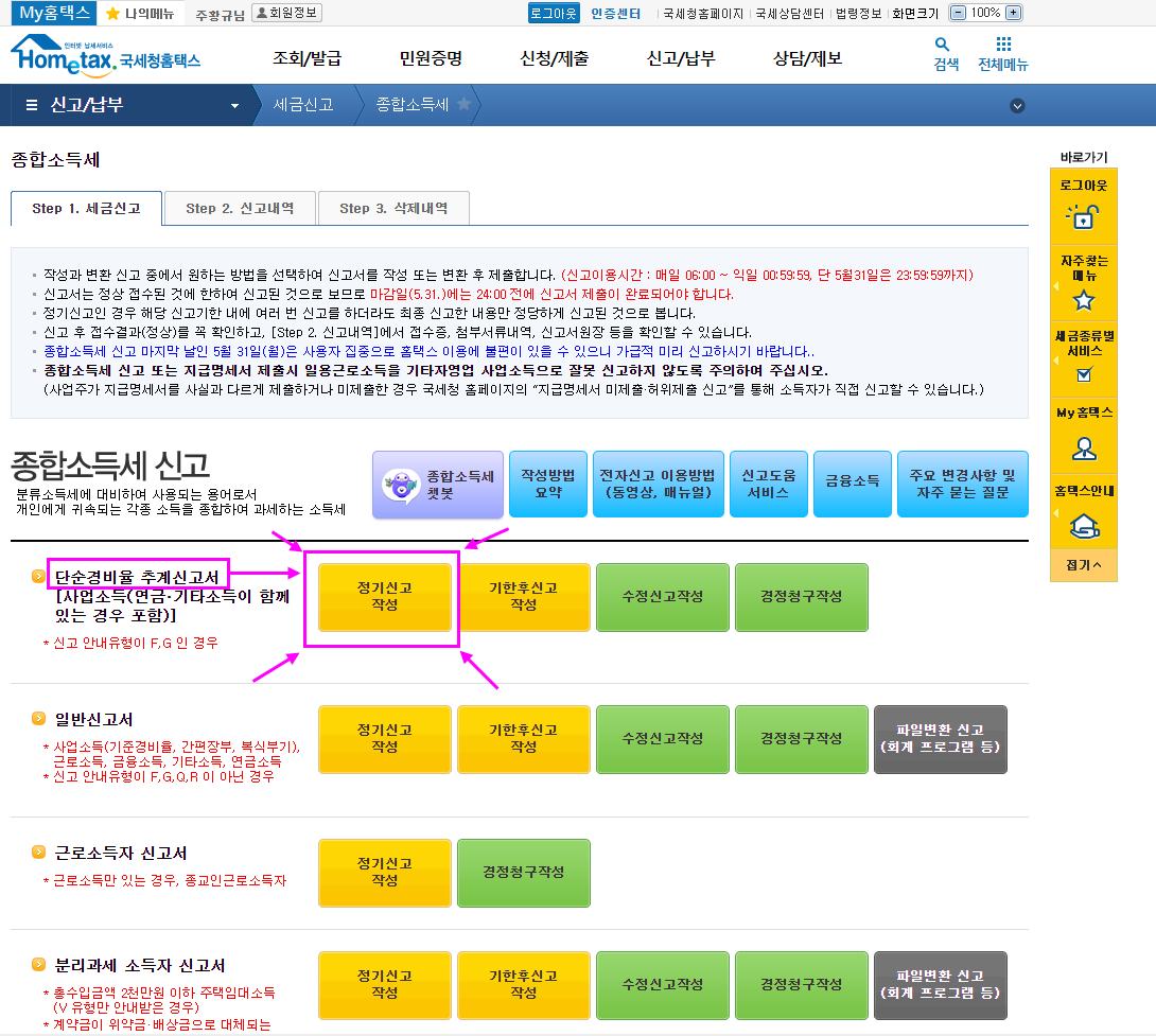 홈택스 단순·기준경비율 (추계)신고 (고정자산있으면 의제감가상각비 고려해야 하므로 무조건 추계신고(단순경비율,기준경비율)신고하면 안됨)