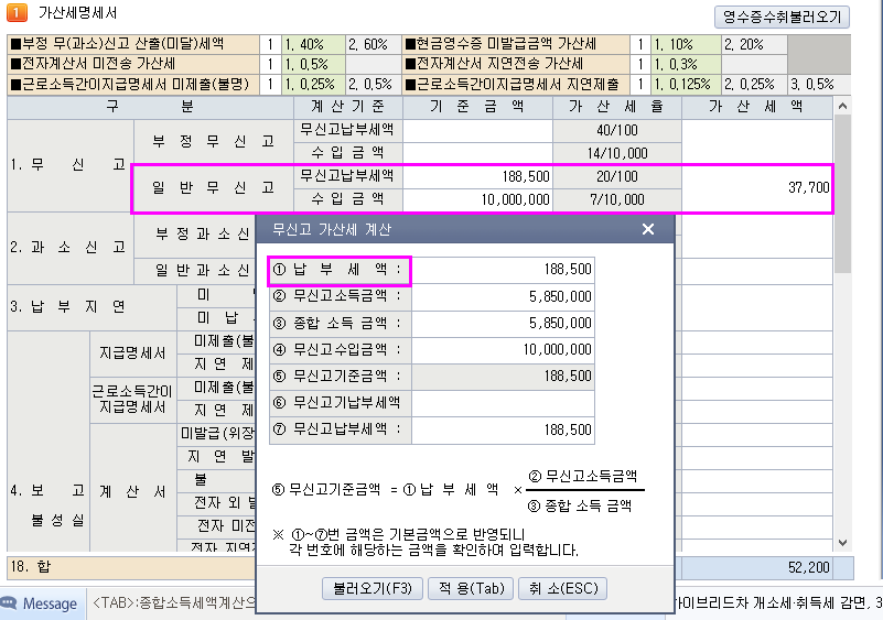 소득세법은 다름. 장부신고시 조정후 수입금액명세서에서 (17) 감소에 간주임대료 기재
