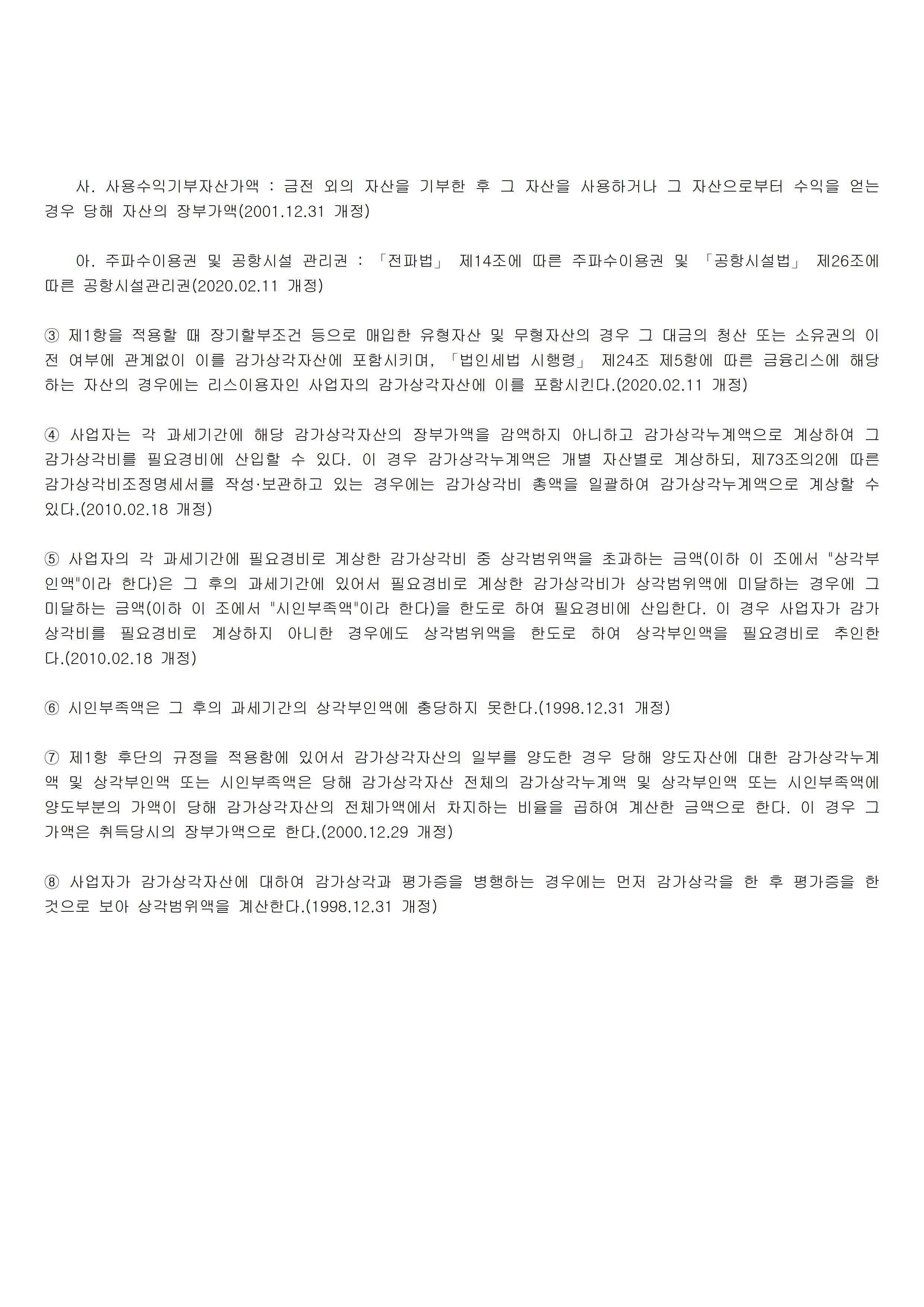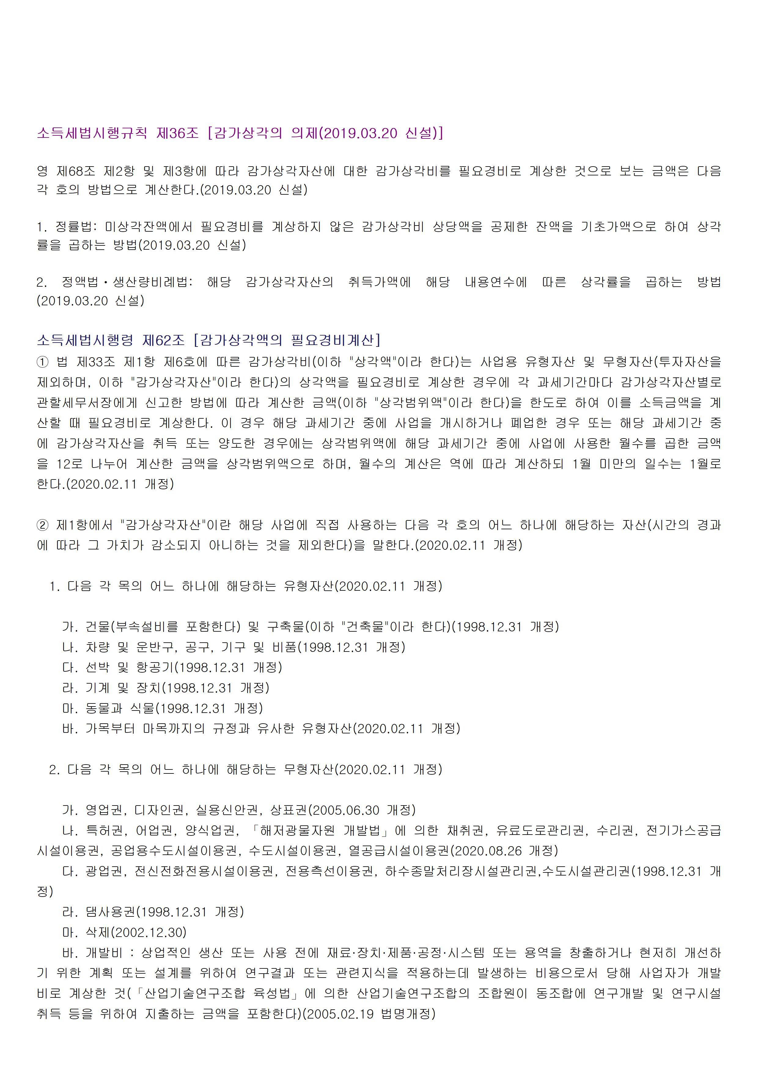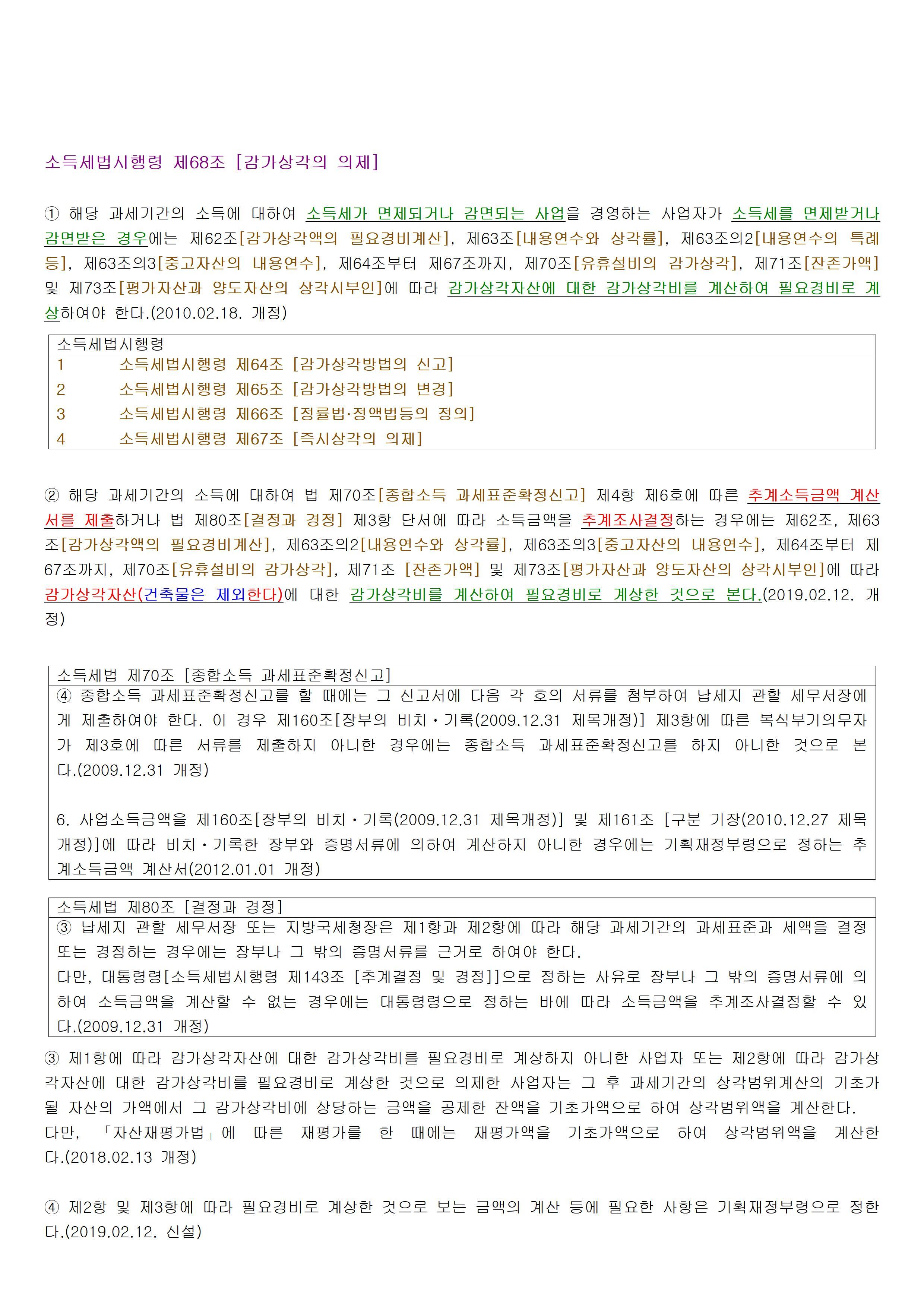 ▣ 소득세법 시행령 제68조 【감가상각의의제】