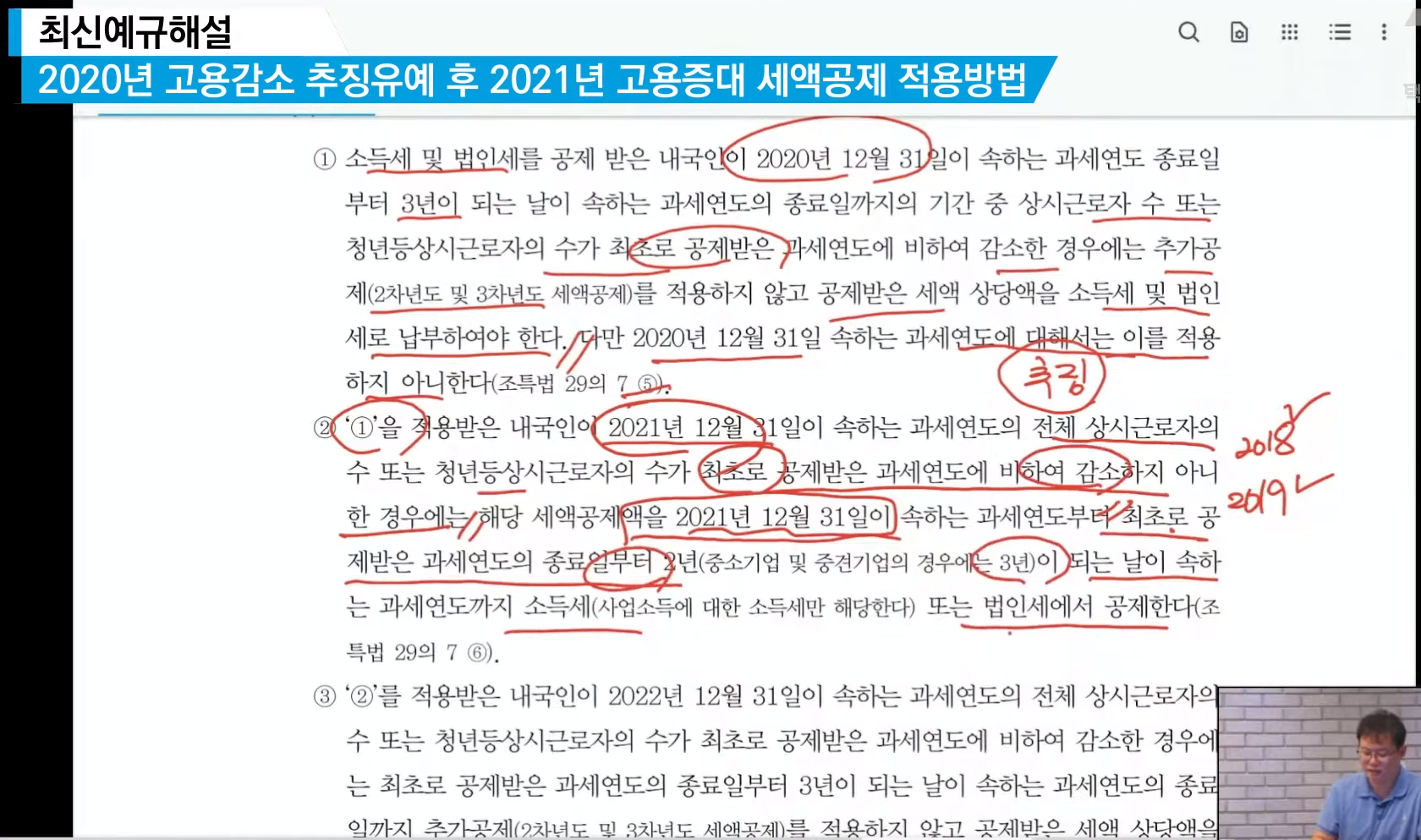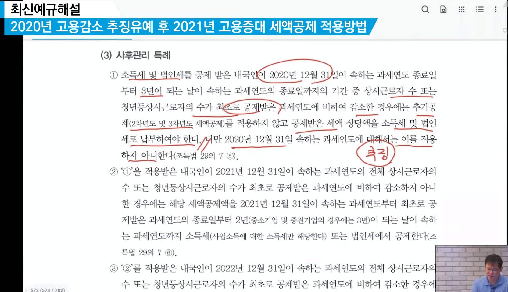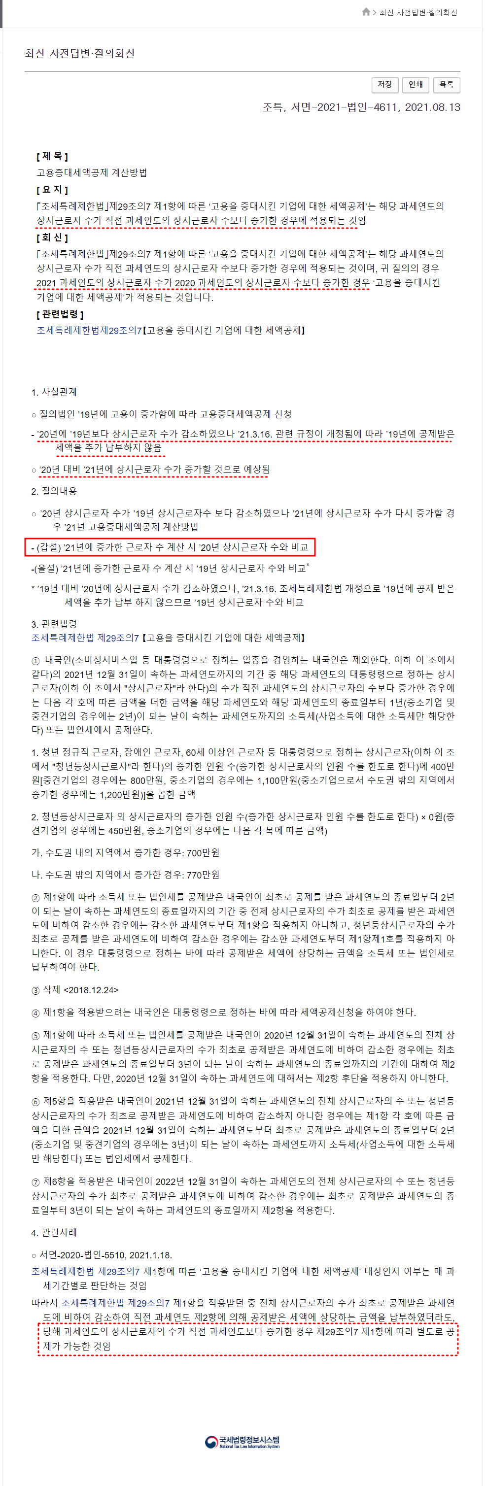 [최신예규해설] 2020년 고용감소 추징유예 후 2021년 고용증대 세액공제 적용방법