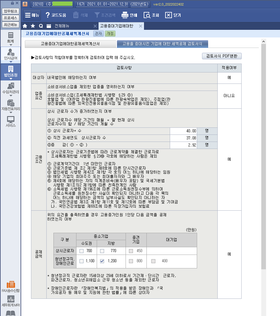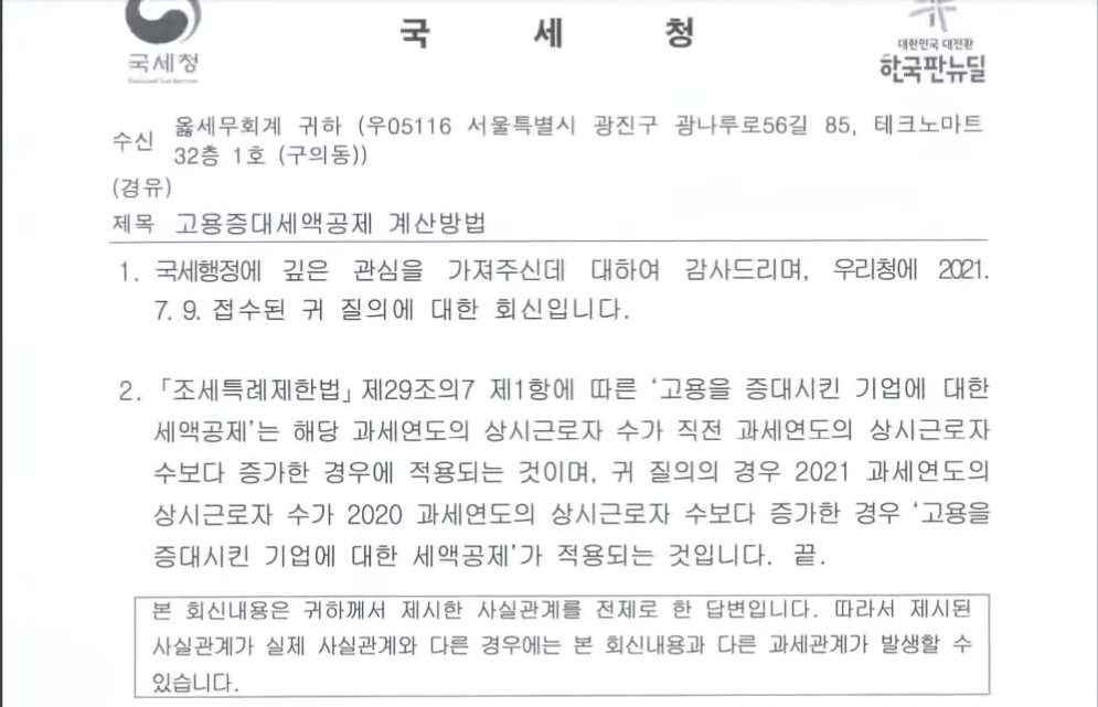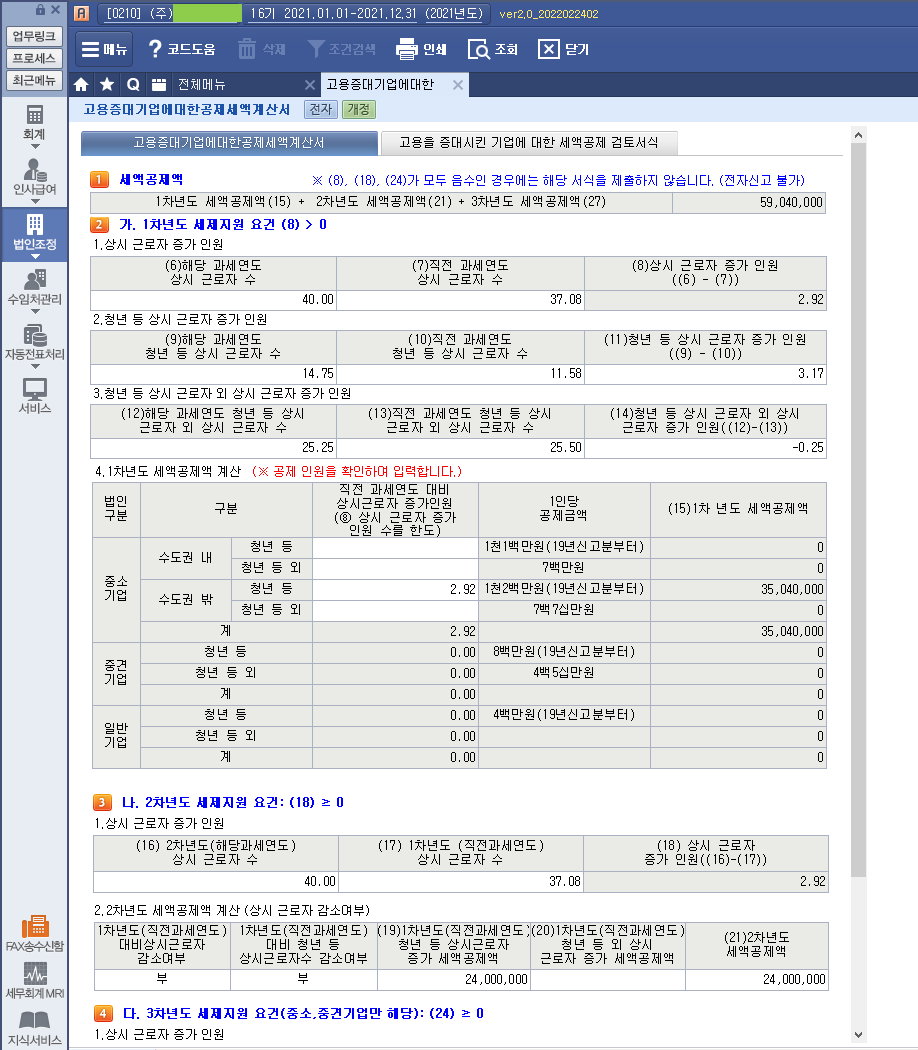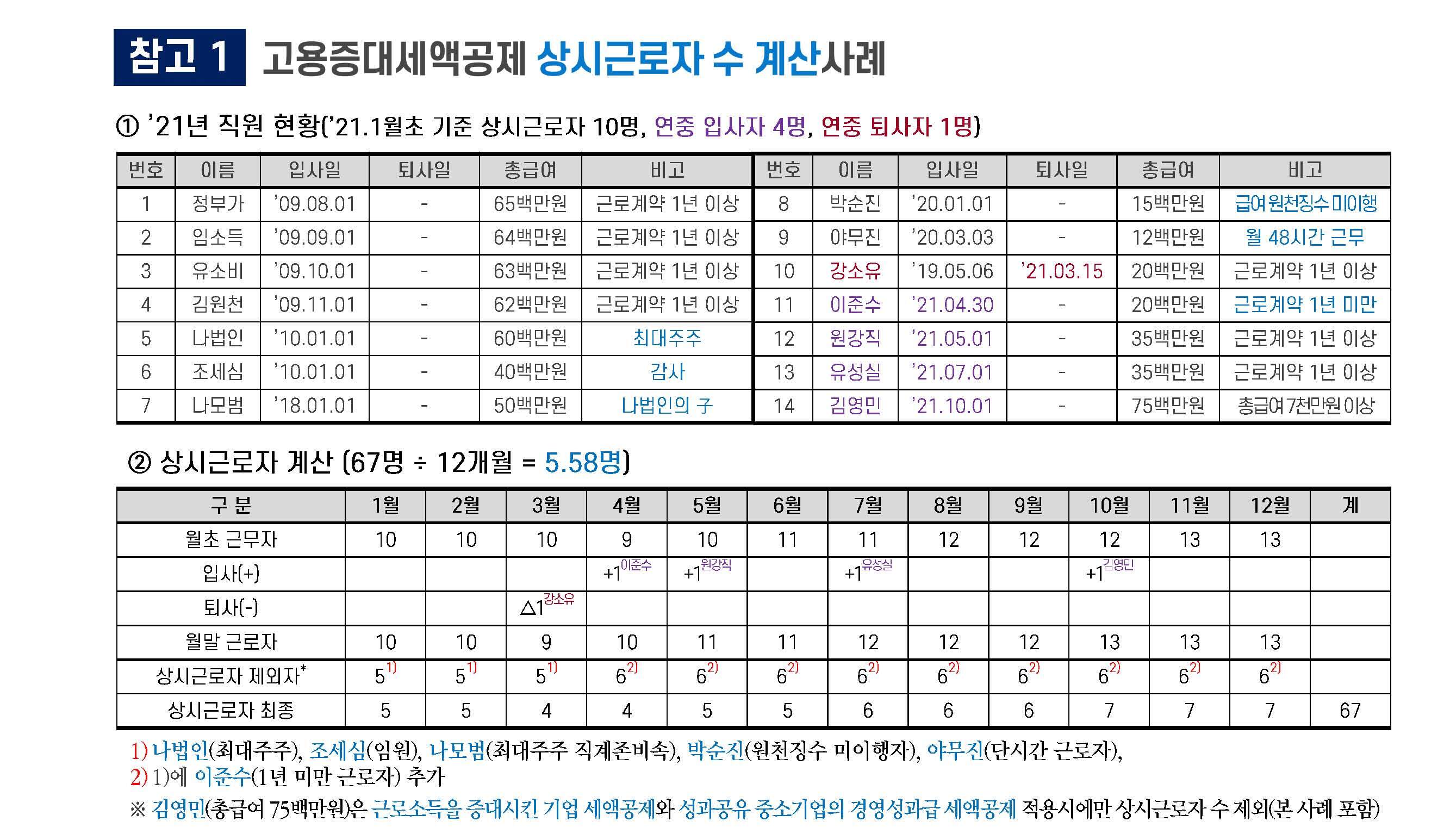 [최신예규해설] 2020년 고용감소 추징유예 후 2021년 고용증대 세액공제 적용방법