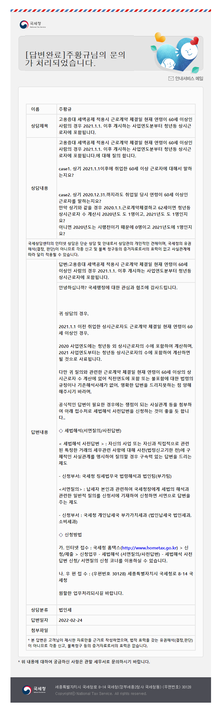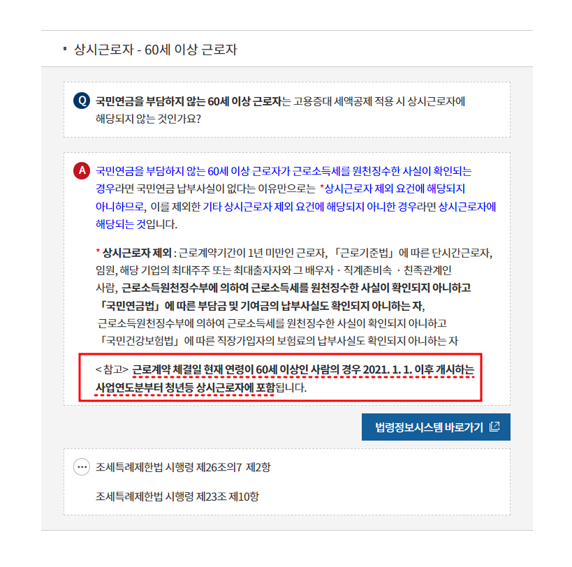 - 연령증가로 청년근로자에서 제외되는 경우(서면-2020-법인-6004, 2021.3.15.)