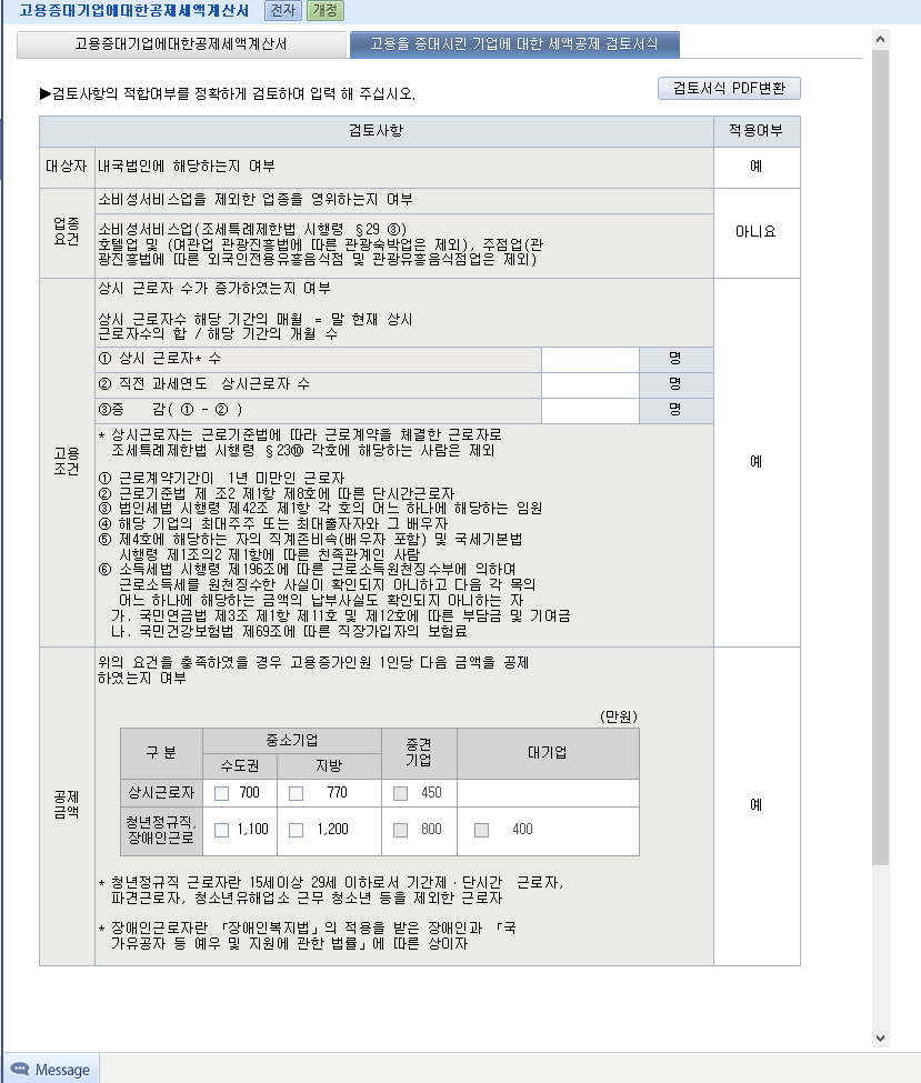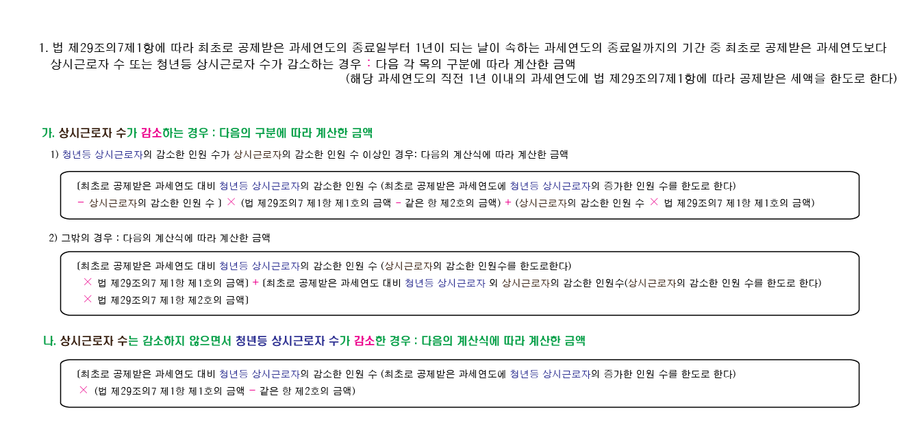 또한 세액공제를 받은 과세연도부터 2년이내 인원이 감소시 공제받은 세액 추징된다.