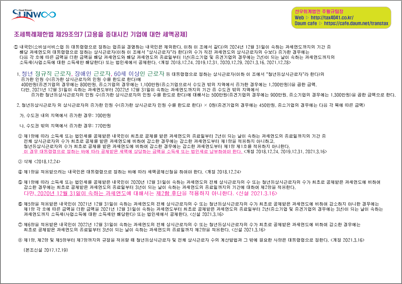 배택현 [14]고용증대세액공제ㅣ2021귀속 법인세 세액공제·감면 - 조특법 주요 세액공제