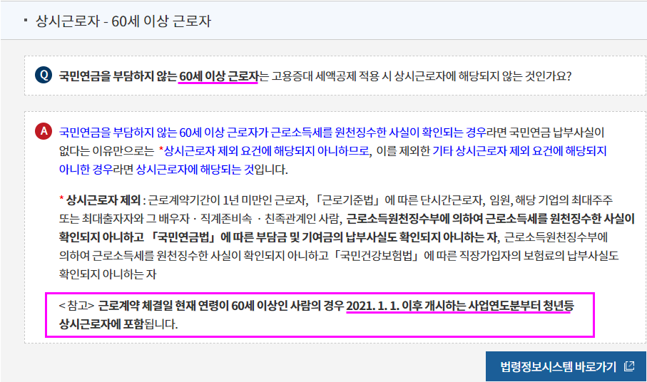 ③ (2021.1.1.이후 시행) 근로계약체결일 현재 60세 이상인 근로자