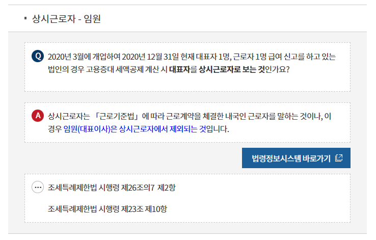 ④ 상시근로자 제외 : 임원(이사급 이상 감사,이사급 이상의 업무수행)및 최대주주와 그 배우자등 check