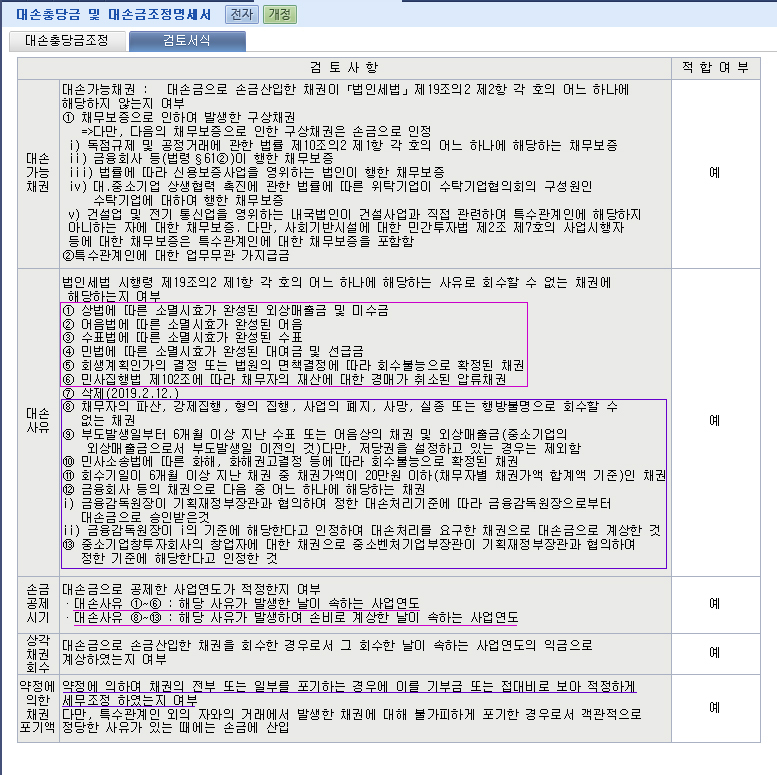 | 법인세법 시행령 제19조의2(대손금의 손금불산입) |