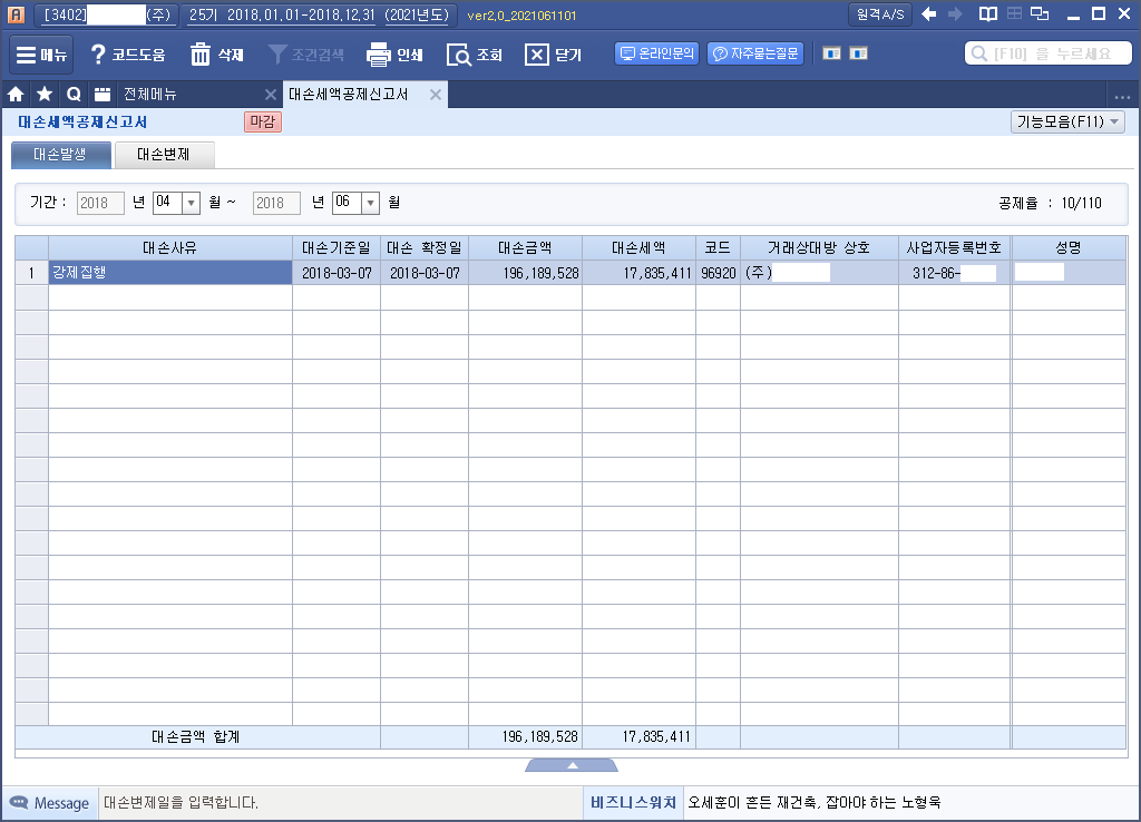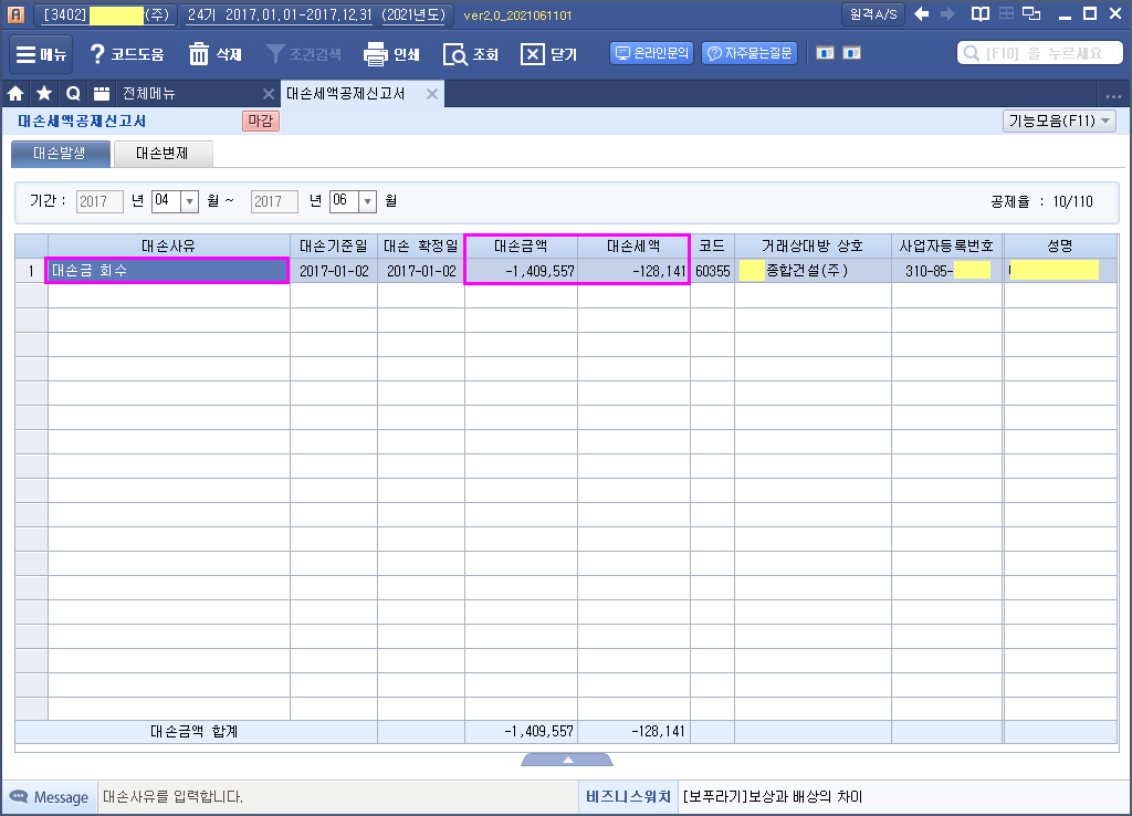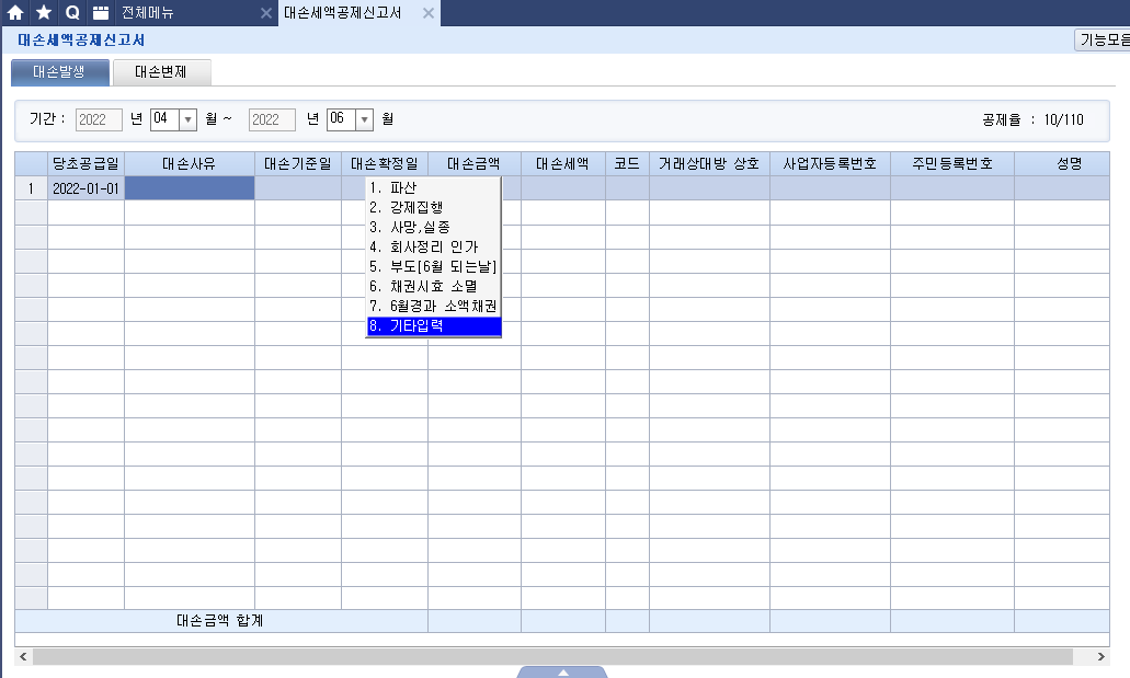 | 대손사유 | 대손시기 |