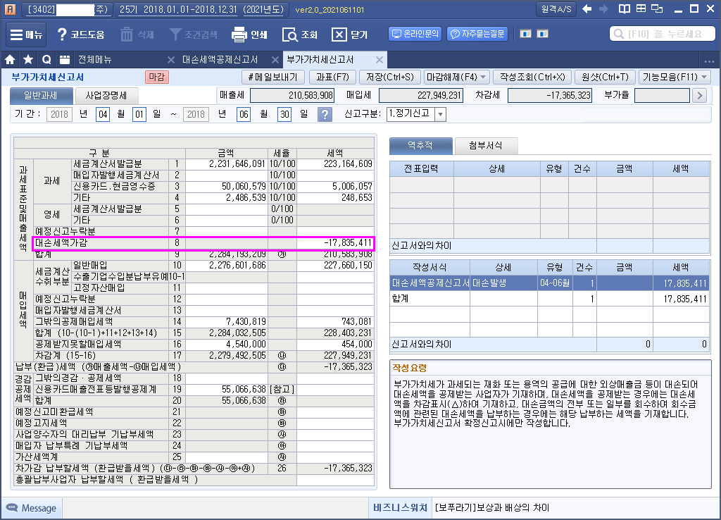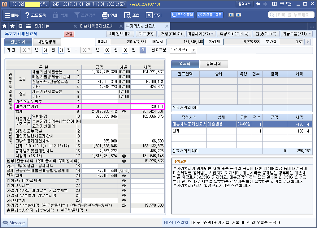 | [ 관련법령 ] | 부가가치세법 제17조의 2 【대손세액공제】 |