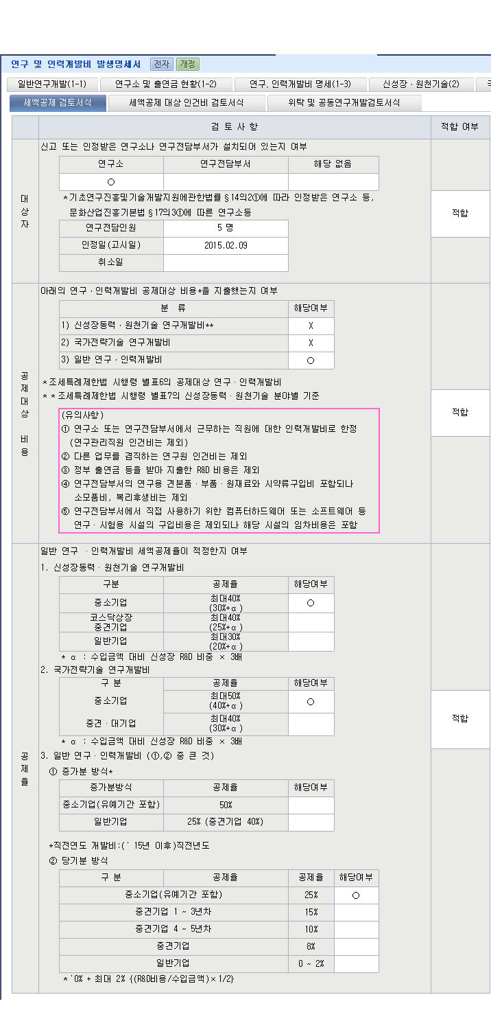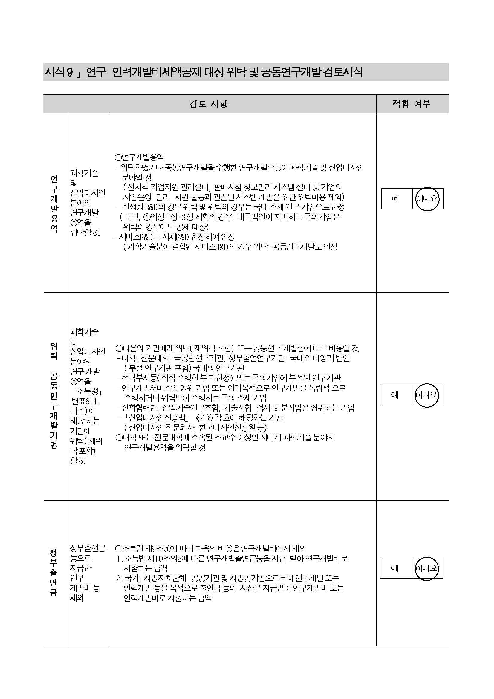 연구ㆍ인력개발비 세액공제를 적용받는 비용(제9조제1항 관련)