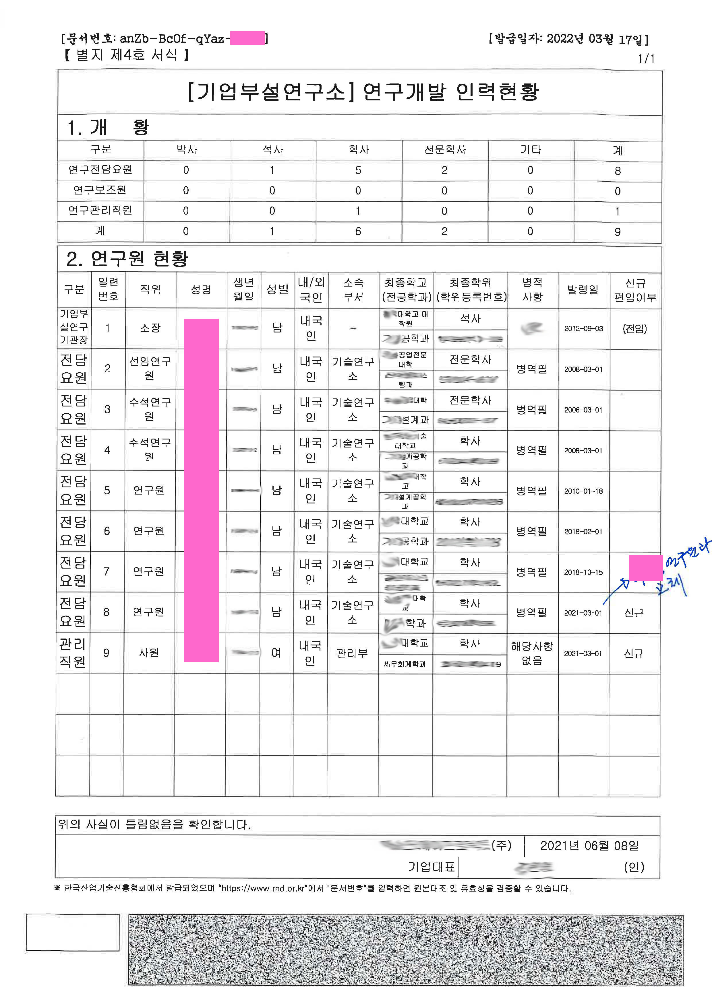 근무하는 직원(연구개발과제를 직접 수행하거나 보조하지 않고 행정 사무를 담당하는 자는 제외한다) 및