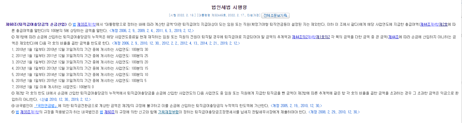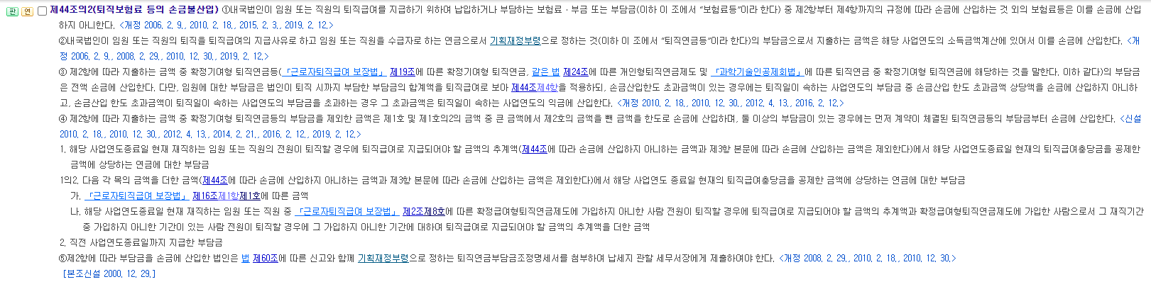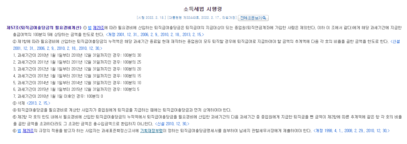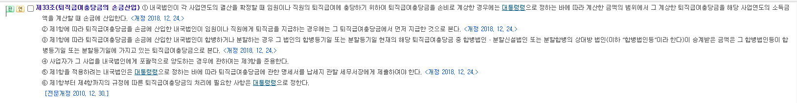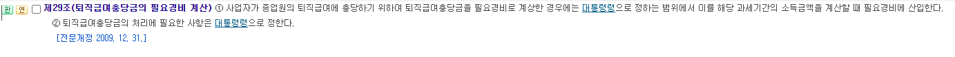 나) 「소득세법」 제29조(퇴직급여충당금의 필요경비 계산)및 「법인세법」 제33조(퇴직급여충당금의 손금산입) 에 따른