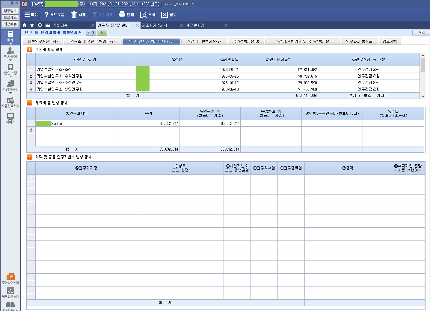 시스템 개발을 위한 위탁비용은 제외한다. 이하 이 목에서 같다) 및 이들 기관과의 공동연구개발을 수행함에 따른 비용