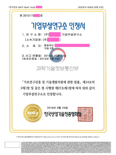 마. 중소기업이 「과학기술분야 정부출연연구기관 등의 설립ㆍ운영 및 육성에 관한 법률」에 따라 설립된